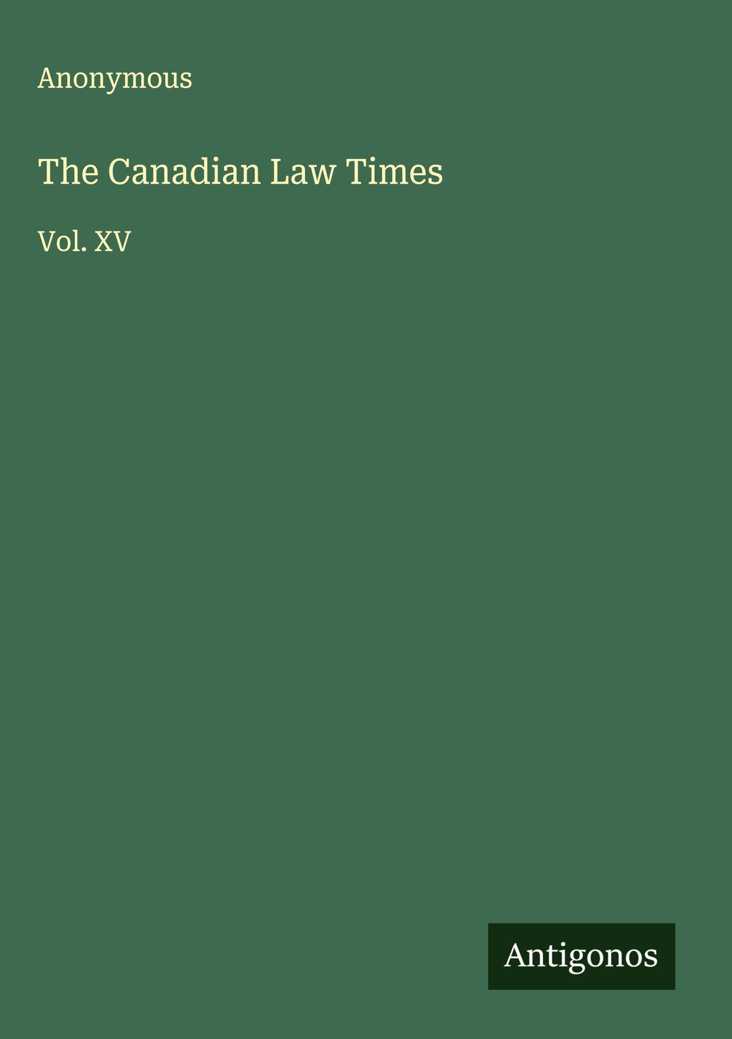 Anonymous: The Canadian Law Times, Gebunden