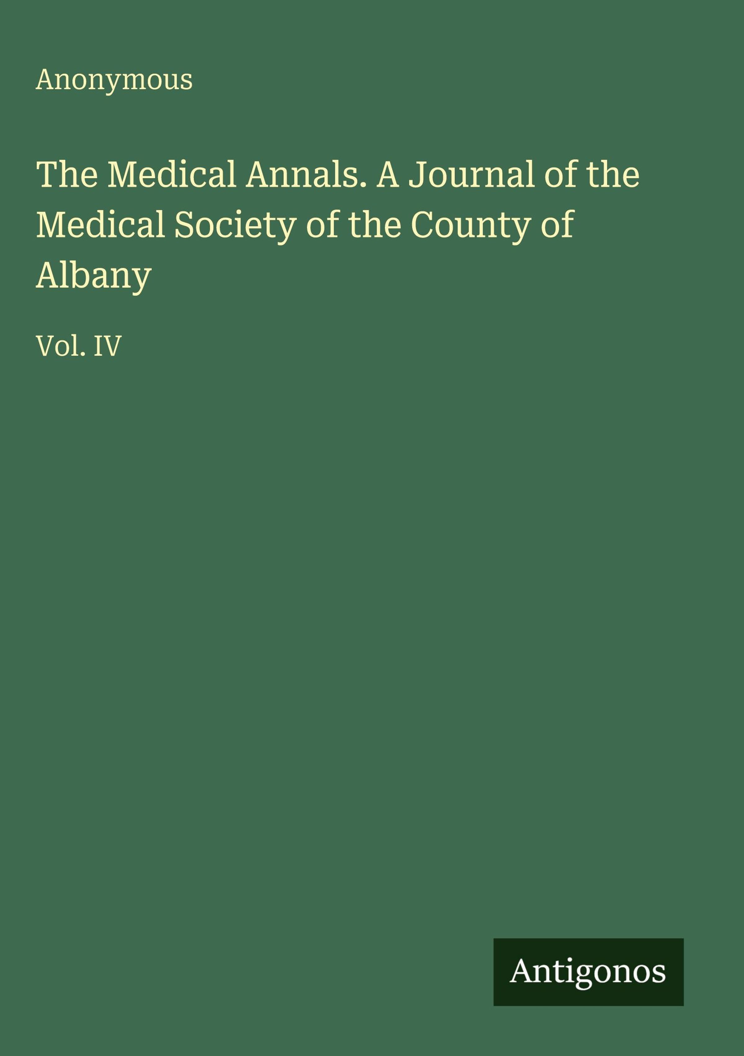 Anonymous: The Medical Annals. A Journal of the Medical Society of the County of Albany, Gebunden