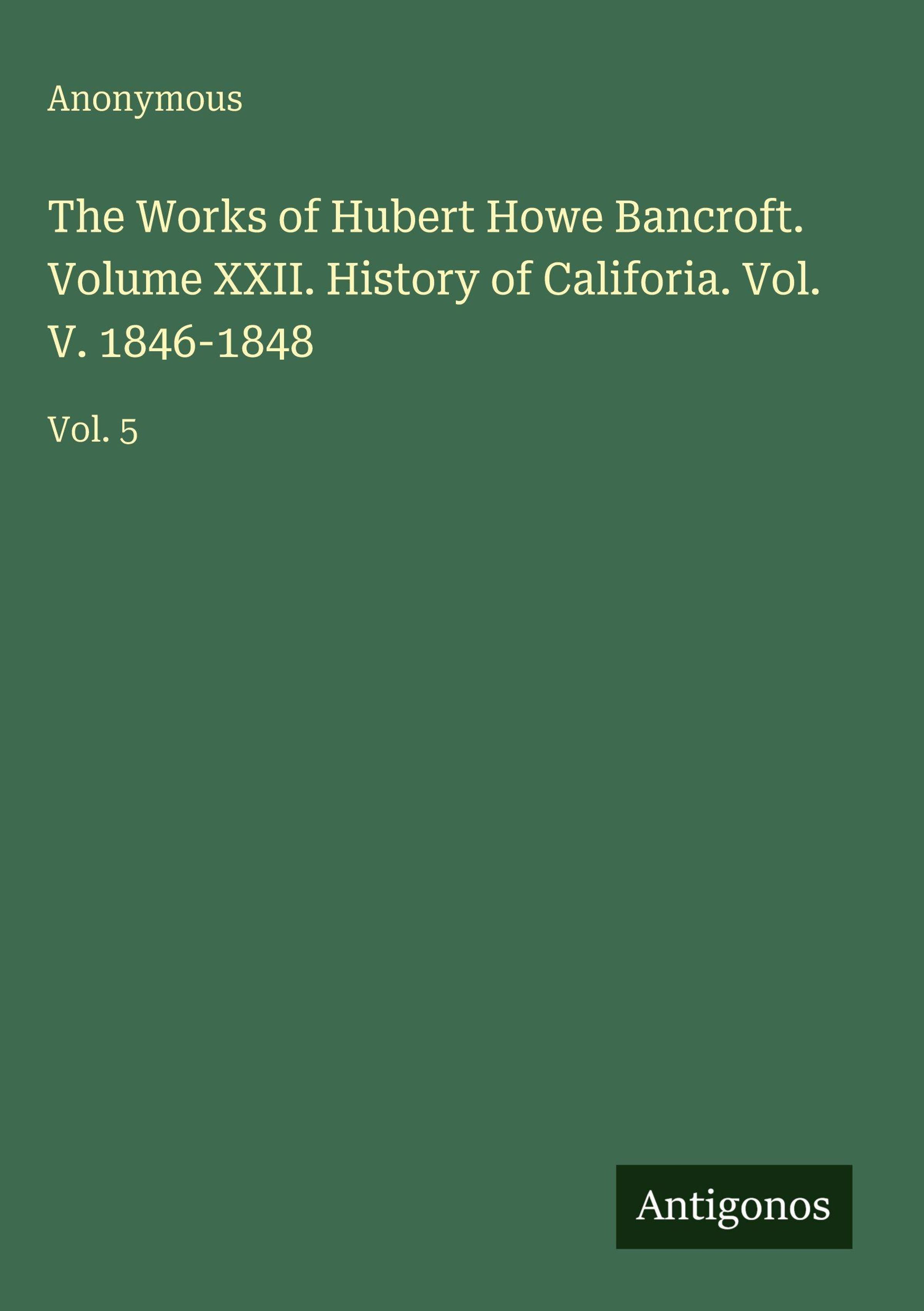 The Works of Hubert Howe Bancroft. Volume XXII. History of Califoria. Vol. V. 1846-1848