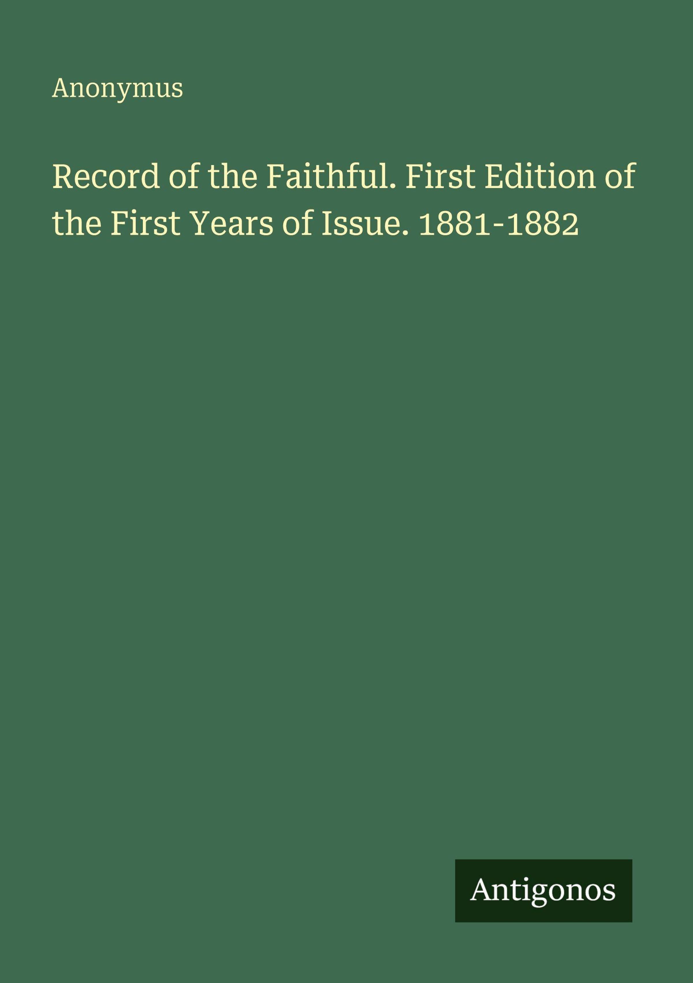 Anonymus: Record of the Faithful. First Edition of the First Years of Issue. 1881-1882, Kartoniert / Broschiert