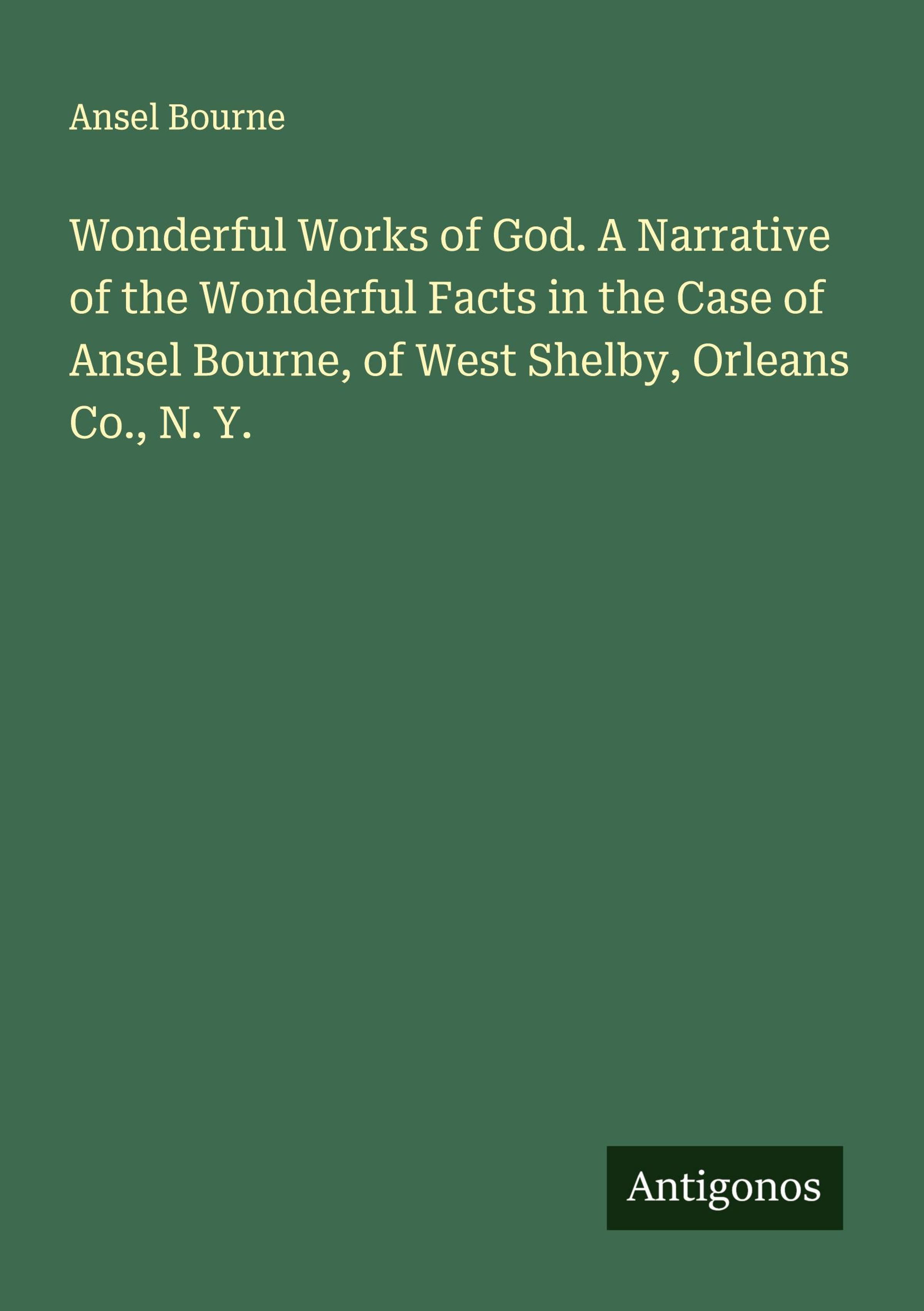 Wonderful Works of God. A Narrative of the Wonderful Facts in the Case of Ansel Bourne, of West Shelby, Orleans Co., N. Y.