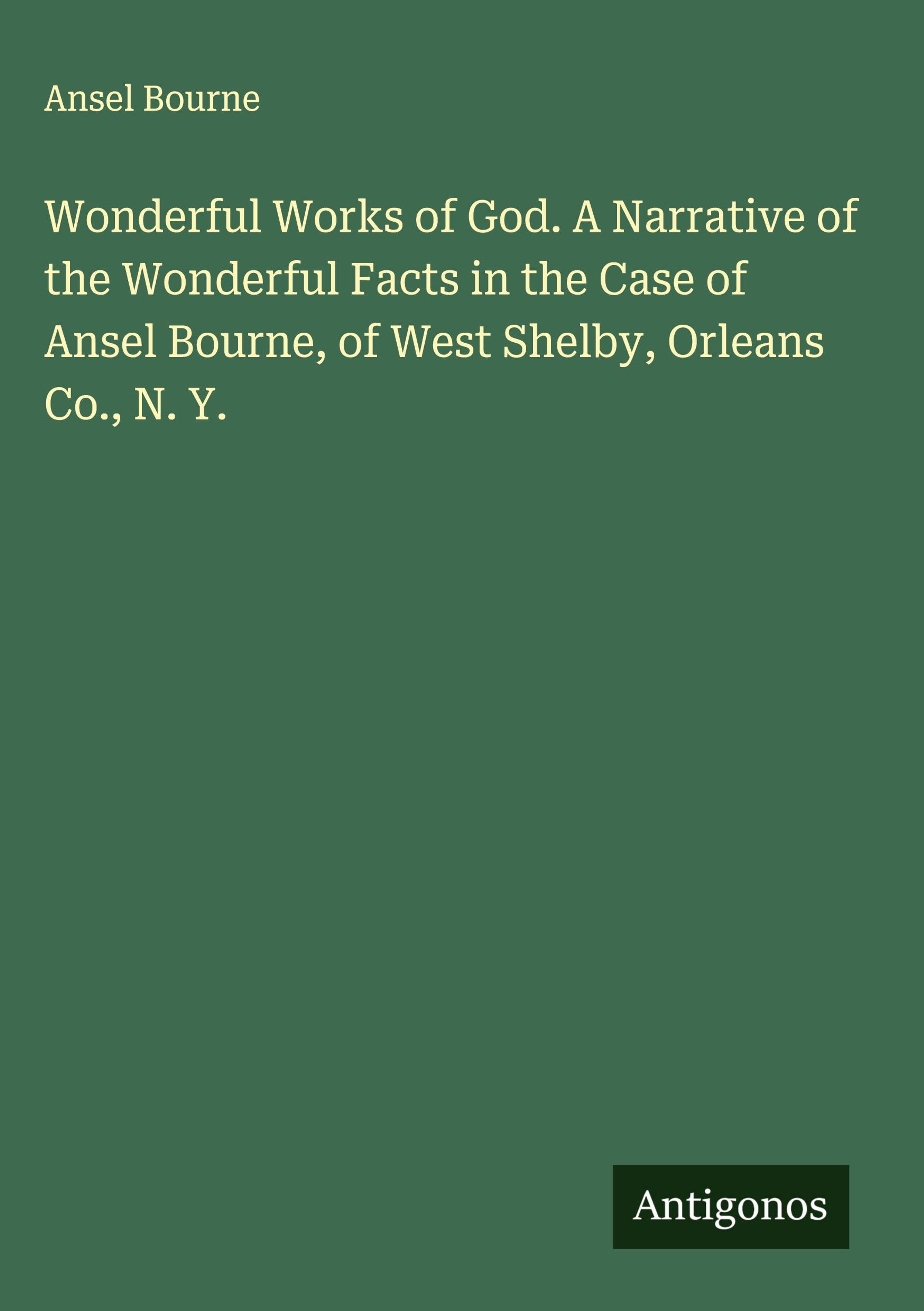 Wonderful Works of God. A Narrative of the Wonderful Facts in the Case of Ansel Bourne, of West Shelby, Orleans Co., N. Y.