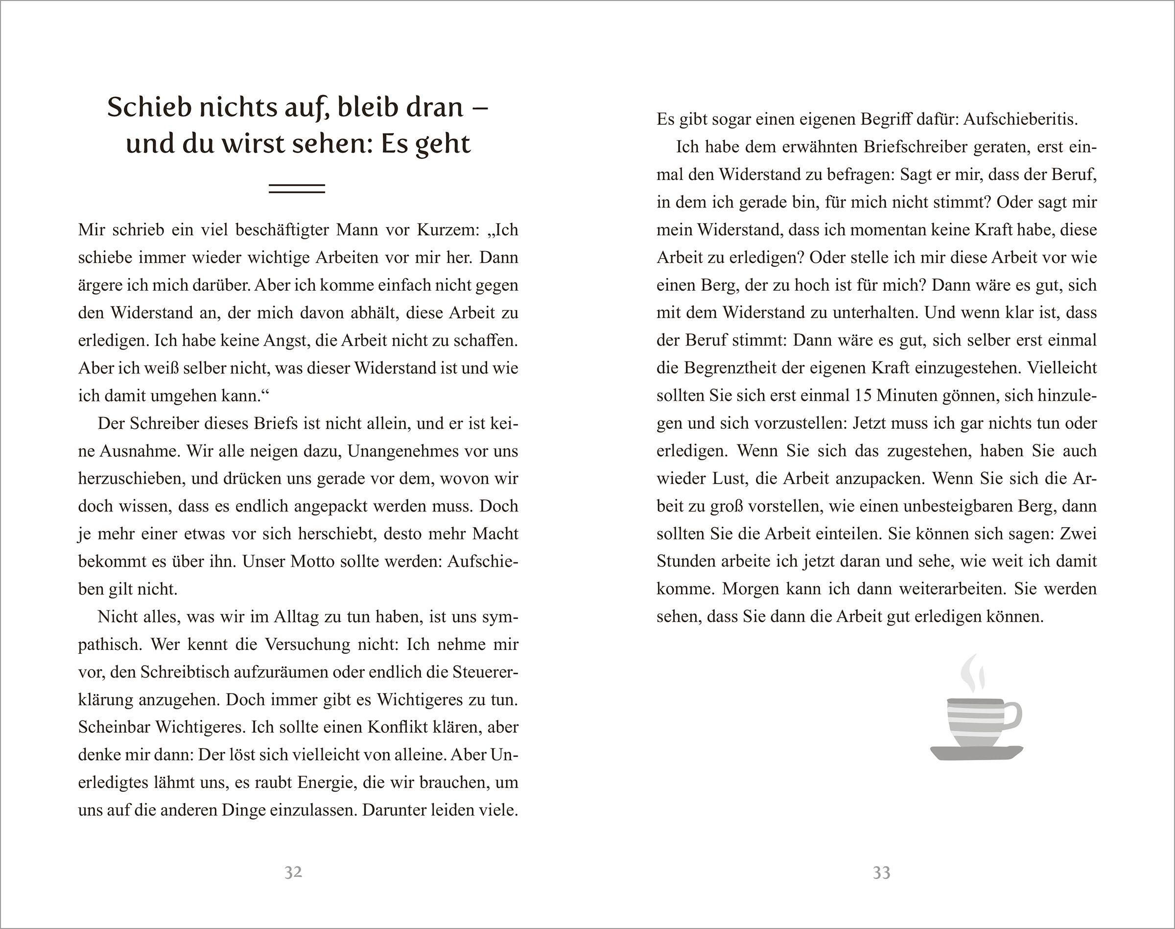 Was wir - immer wieder und auch >>zwischendrin<< - tun können, um sie zu erschließen zeigt Anselm Grün, sehr konkret, sehr anschaulich und vielfach erprobt: Alles kann dann einfacher werden - in der Familie, am Arbeitsplatz und in den Beziehungen, im Blick auf uns selber und die Welt um uns herum.
