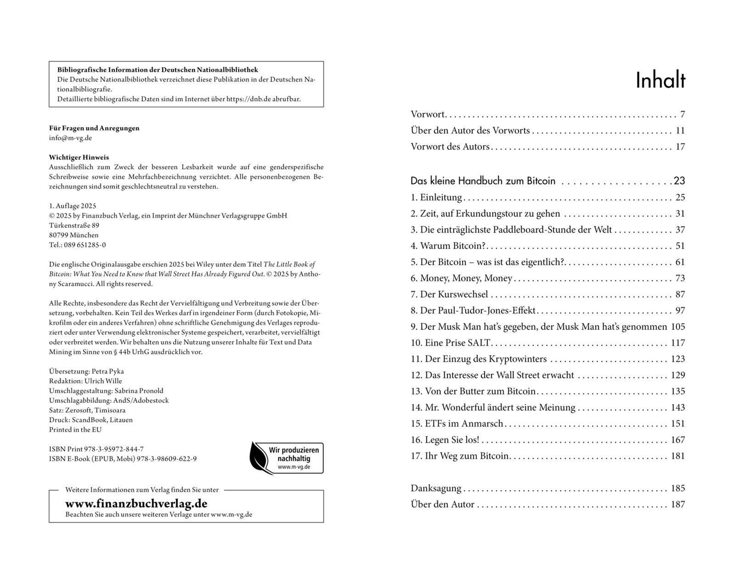 Die heutigen Veränderungen durch Kryptowährungen wie Bitcoin sind erst der Anfang. In den nächsten Jahren und Jahrzehnten wird es zu umfassenden Umwälzungen in der Finanzindustrie und der Gesellschaft kommen. In 'Das kleine Handbuch zum Bitcoin' liefert Anthony Scaramucci einen umfassenden Leitfaden zum Verständnis der Transformationen in der Finanzindustrie, die sich aus dem Aufkommen und der zunehmenden Bedeutung der Technologie für digitale Vermögenswerte ergeben. Dieses Buch spannt den Bogen von den grundlegenden Konzepten bis zu den Auswirkungen der dezentralen Finanzwirtschaft auf die Finanzbranche und die Gesellschaft als Ganzes. 'Das kleine Handbuch zum Bitcoin' ist ein unverzichtbarer aktueller Leitfaden zu digitalen Vermögenswerten und den damit verbundenen Technologien für jeden, der die anbrechende Zukunft der Finanzwelt verstehen möchte, egal ob Kleinanleger oder Hedge-Fonds-Manager. In diesem Buch erfahren die Leser: - wieso man Bitcoin als digitales Gold bezeichnen kann und wie es sich von anderen Kryptowährungen wie Ethereum unterscheidet, - wie sich Kryptowährungen über zentralisierte Plattformen wie Binance und dezentrale Finanzplattformen (DeFi) wie Uniswap handeln lassen, - wie Hashes, Blockchains und Mining zusammenspielen, - wie 'Zero Knowledge Proof' funktioniert und wie diese Technologie helfen kann, sich bei der Nutzung von Kryptowährungen anonym zu legitimieren.