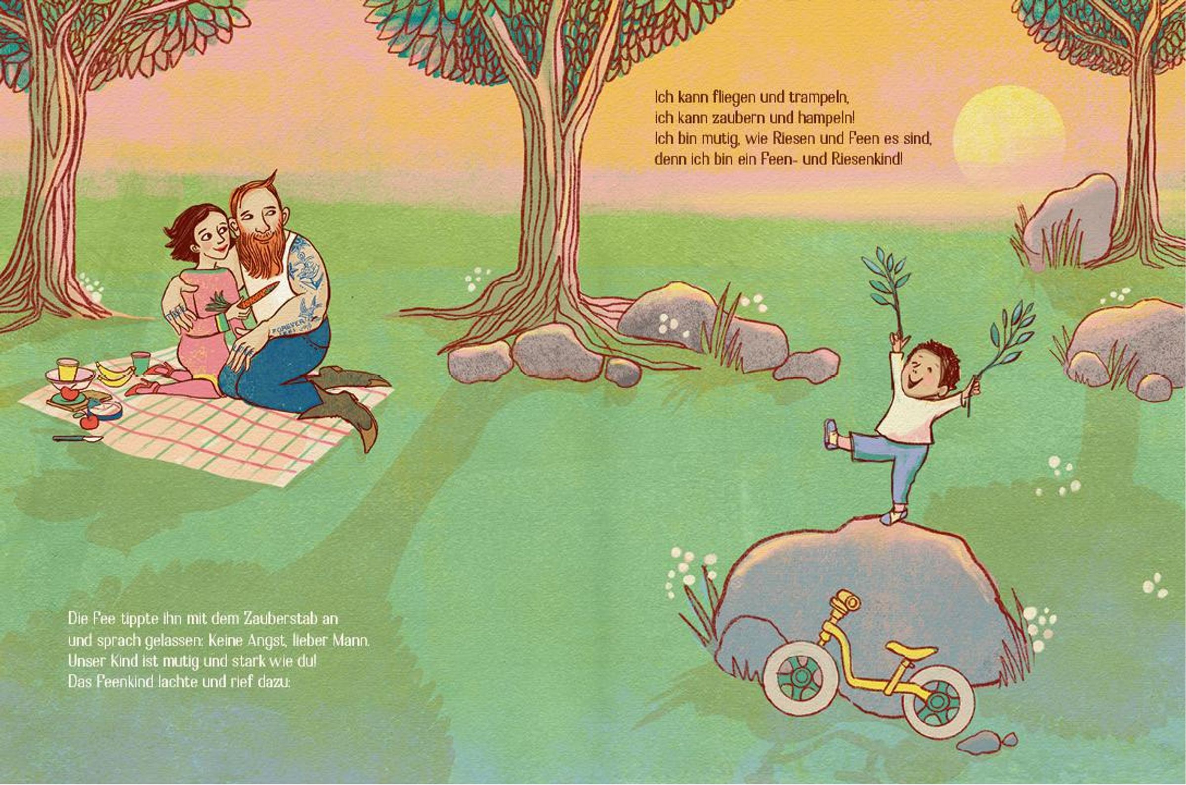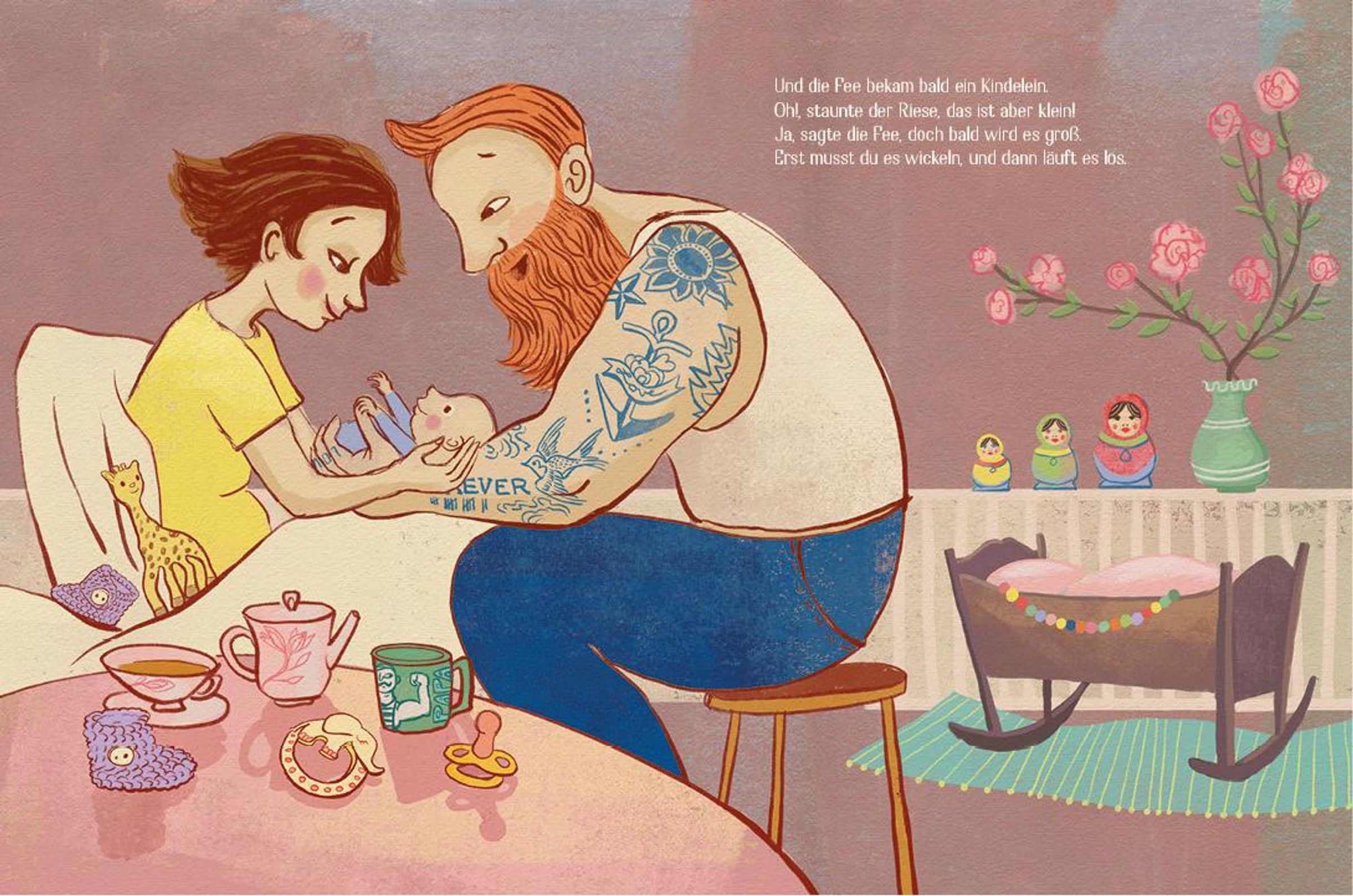 Hallo, Riese, ich mag dich, so gefällst du mir, schau mich an, ich möchte ein Kind von dir! Der Riese staunte und fragte geschwind: Was ist das - ein Kind? Und schon lässt sich der Riese auf das größte Abenteuer seines Lebens ein. Gut, dass er dabei die Fee an seiner Seite hat. Denn nichts schmeißt das Leben gründlicher durcheinander als die Geburt eines Kindes. Das Wichtigste dabei ist die Zuversicht. Sie macht aus Eltern Riesen und Feen und aus Kindern unschlagbare Riesen- und Feenkinder. Ein modernes Märchen voller Poesie - und ein Geschenkbuch für junge Eltern!