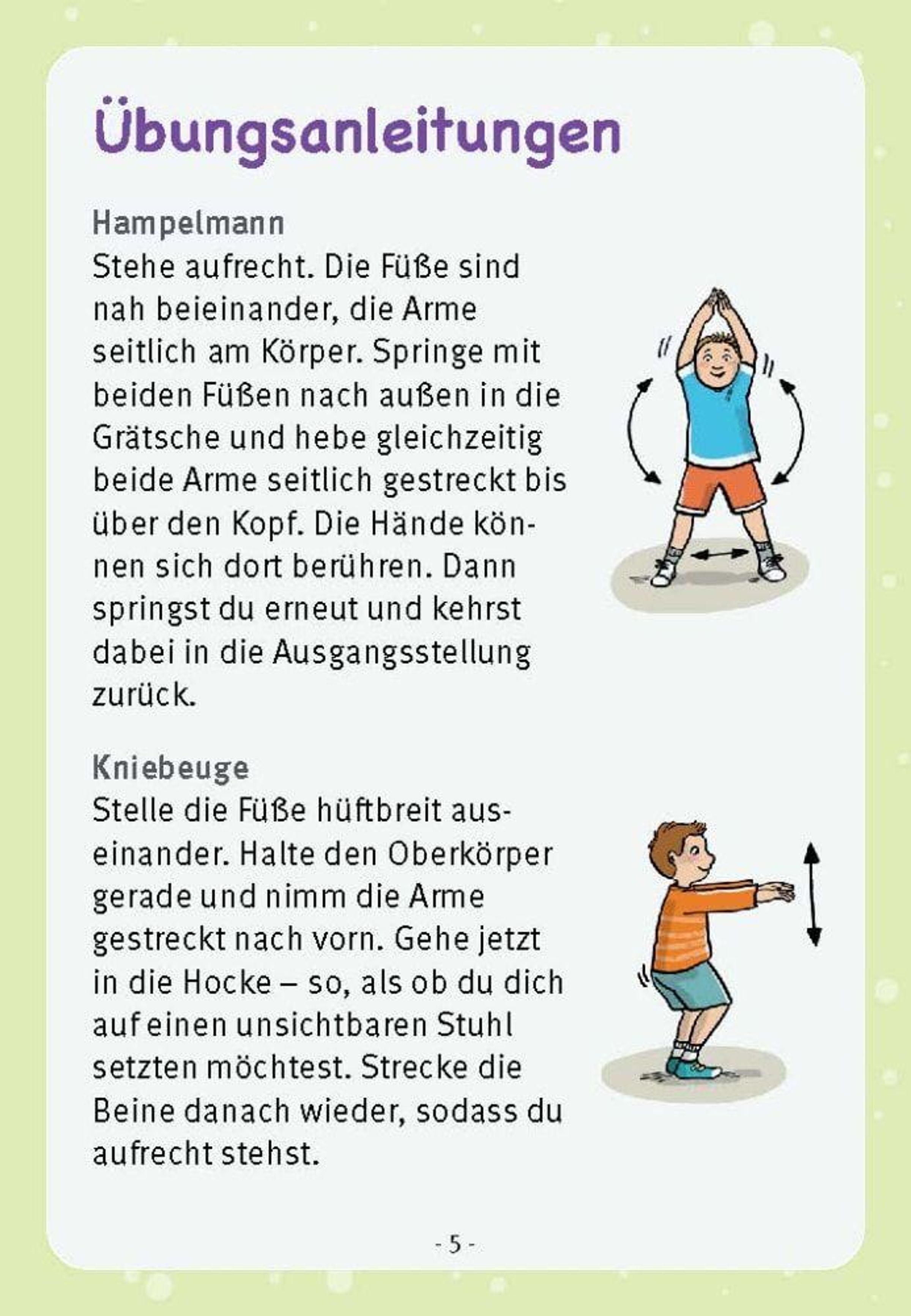 - Hampelmann, Kniebeuge, Strecksprung & Co.: acht Bewegungsübungen mit abwechslungsreichen Spielideen