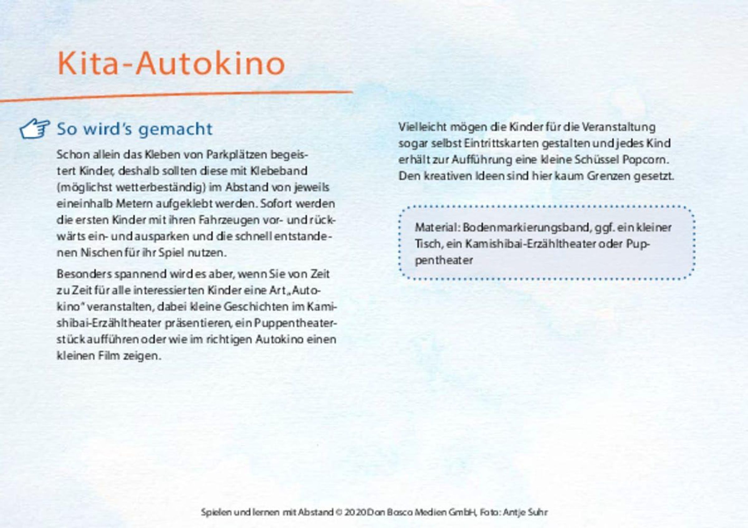 Alle 30 Fotoideen sind anschaulich erklärt und meist praktisch mit alltäglichen Materialien einfach umzusetzen. Somit können sie auch temporär in Infektionszeiten und natürlich auch darüber hinaus langfristig, in den Kindergarten-Alltag integriert werden.