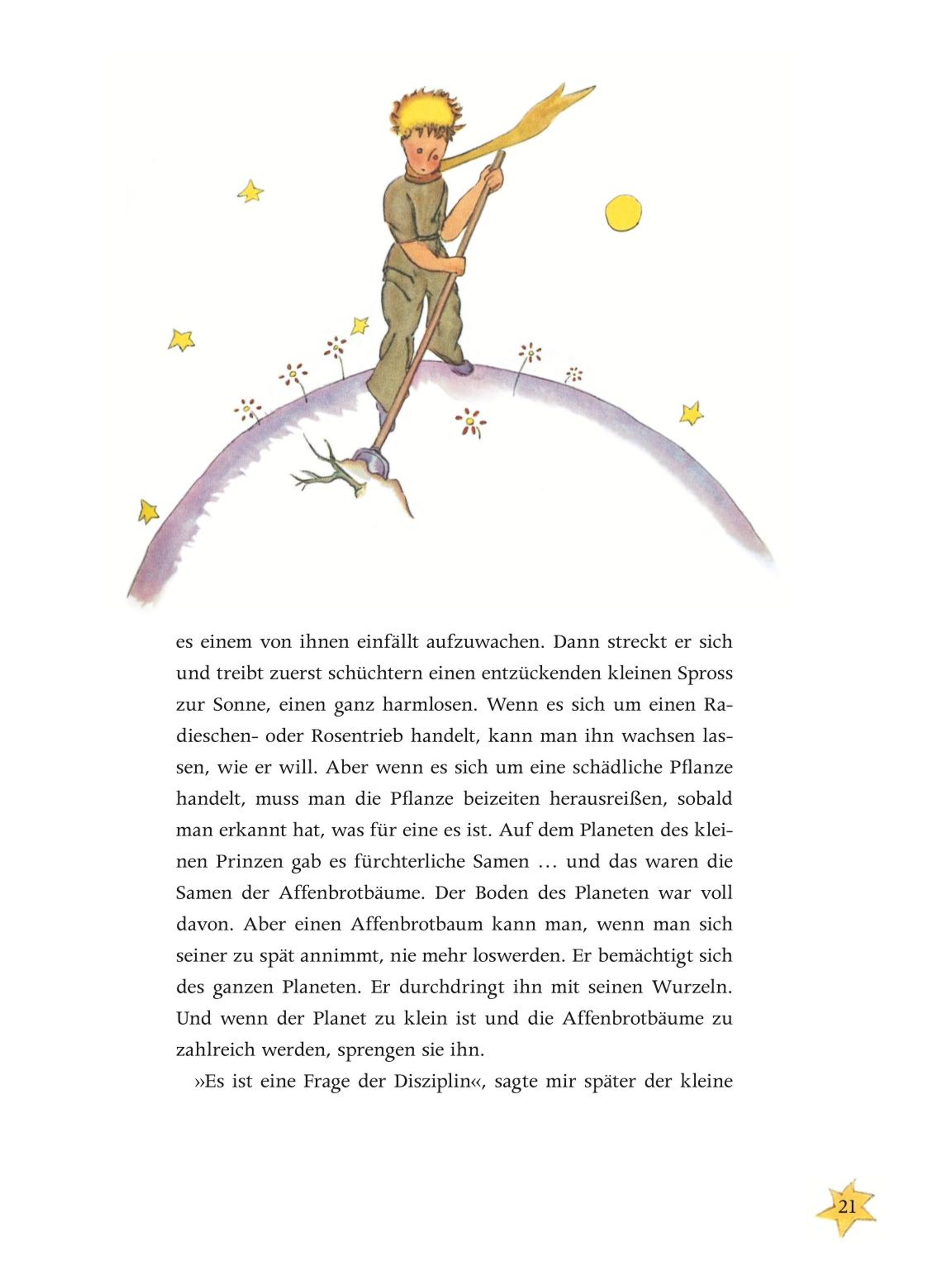 Hochwertig ausgestattete, großformatige, aber handliche Ausgabe In etwas größerer Schrift, die den Erwachsenen das Vorlesen erleichtert und den kleinen Lesern beim Selbstlesen hilft. Längst ein Klassiker und Millionen können aus ihm zitieren: Der Kleine Prinz lebt zusammen mit seiner Rose auf dem Planeten Asteroid B 612 und besucht die Erde. Hier lernt er neben dem Erzähler, der mit seinem Flugzeug in der Wüste notlandete, unter anderem den Fuchs kennen, der ihm das Vertraut-machen erklärt: "Du bist zeitlebens dafür verantwortlich für das, was Du Dir vertraut gemacht hast". Ein weltbekanntes Buch voller Weisheiten und mit vielen geläufigen Zitaten, wie "Man sieht nur mit dem Herzen gut" oder "Das Eigentliche ist unsichtbar". In der Originalübersetzung und mit den bekannten farbigen Illustrationen des Autors.