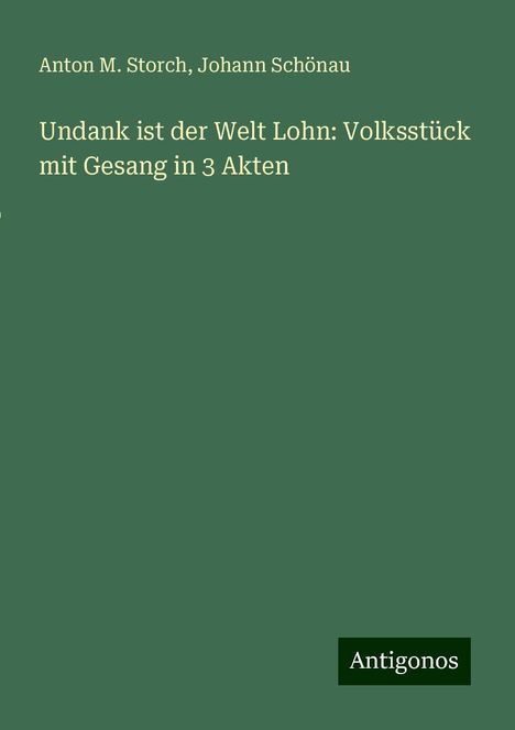 Storch, A: Undank ist der Welt Lohn: Volksstück mit Gesang i