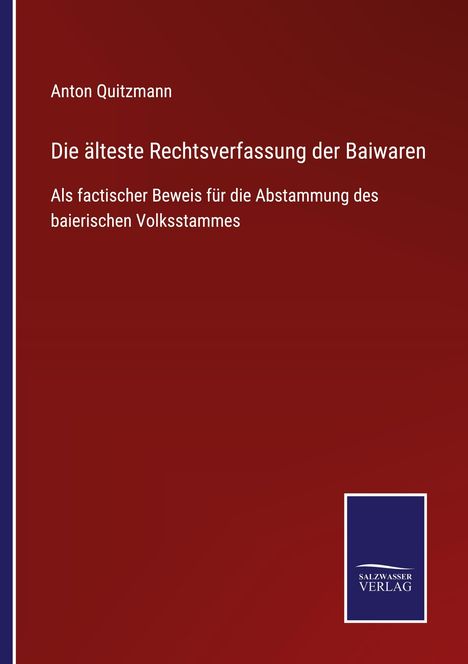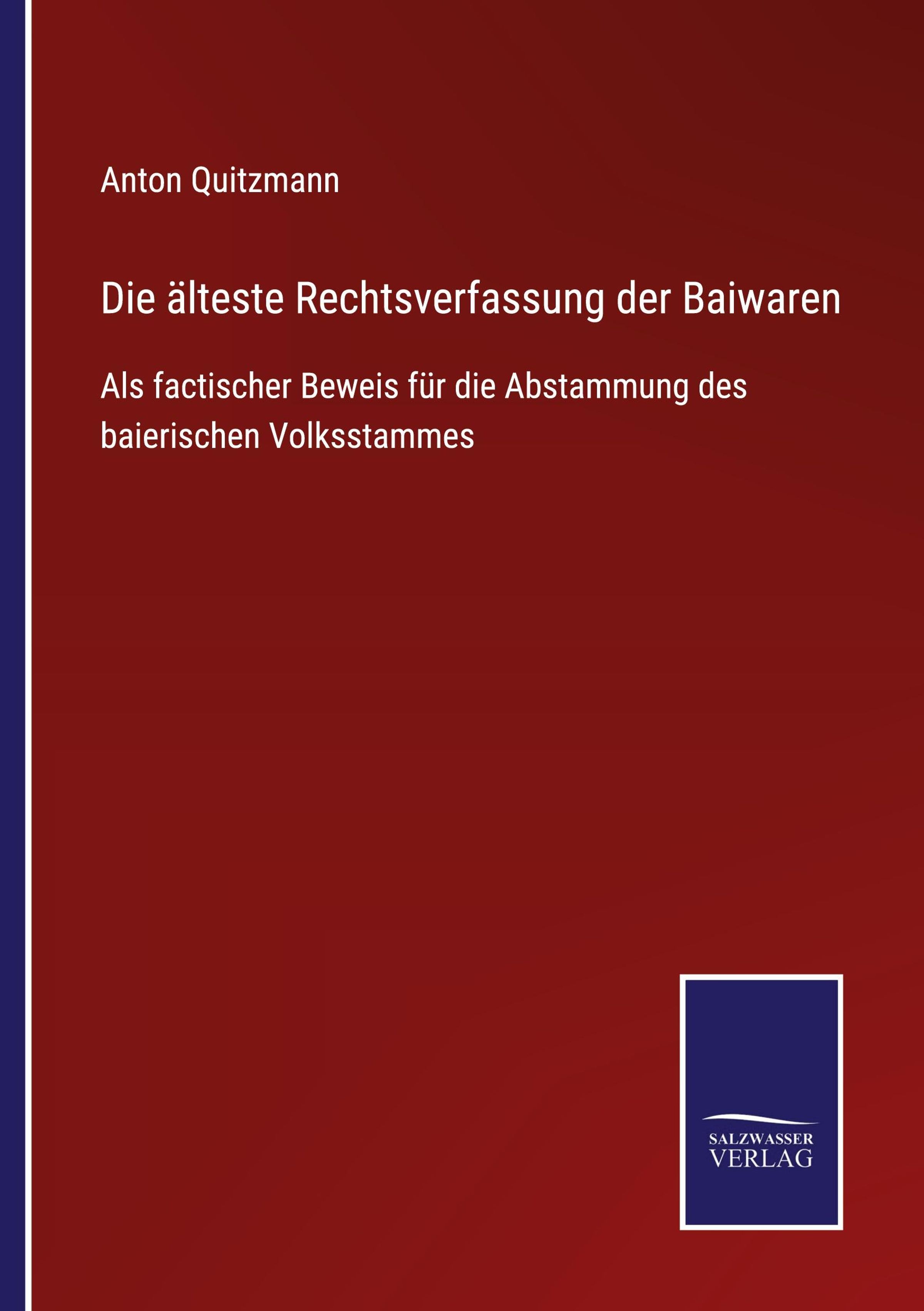 Anton Quitzmann: Die älteste Rechtsverfassung der Baiwaren, Kartoniert / Broschiert