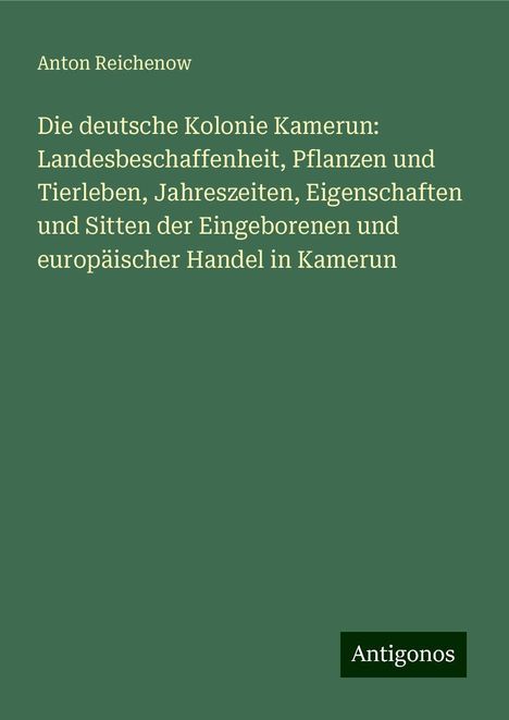 Anton Reichenow: Reichenow, A: Die deutsche Kolonie Kamerun: Landesbeschaffen, Fester Einband