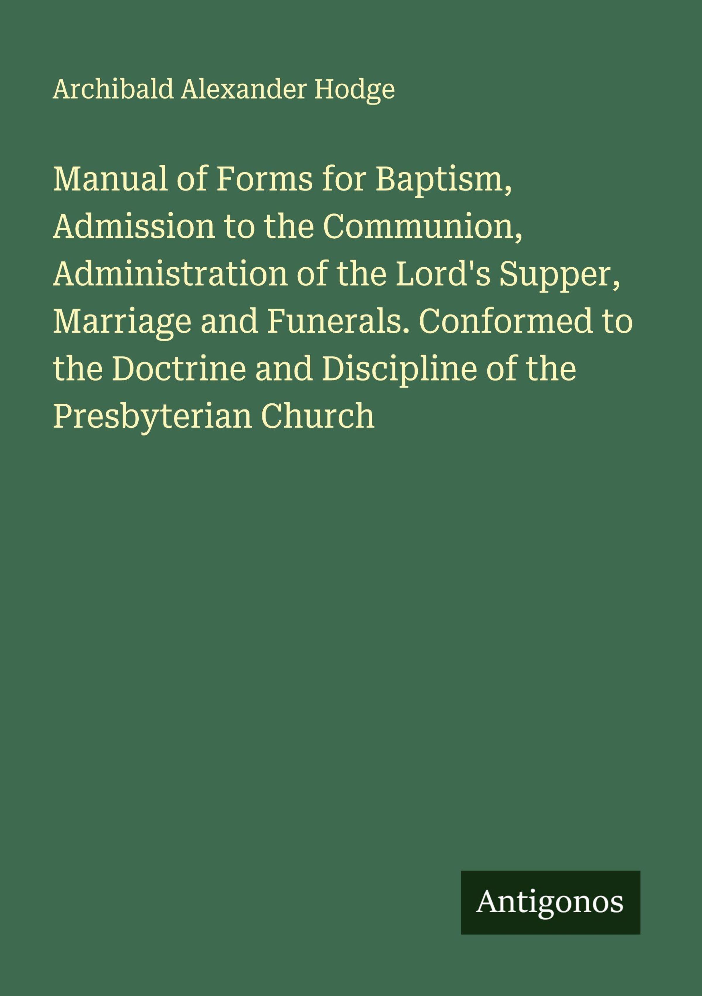Manual of Forms for Baptism, Admission to the Communion, Administration of the Lord's Supper, Marriage and Funerals. Conformed to the Doctrine and Discipline of the Presbyterian Church