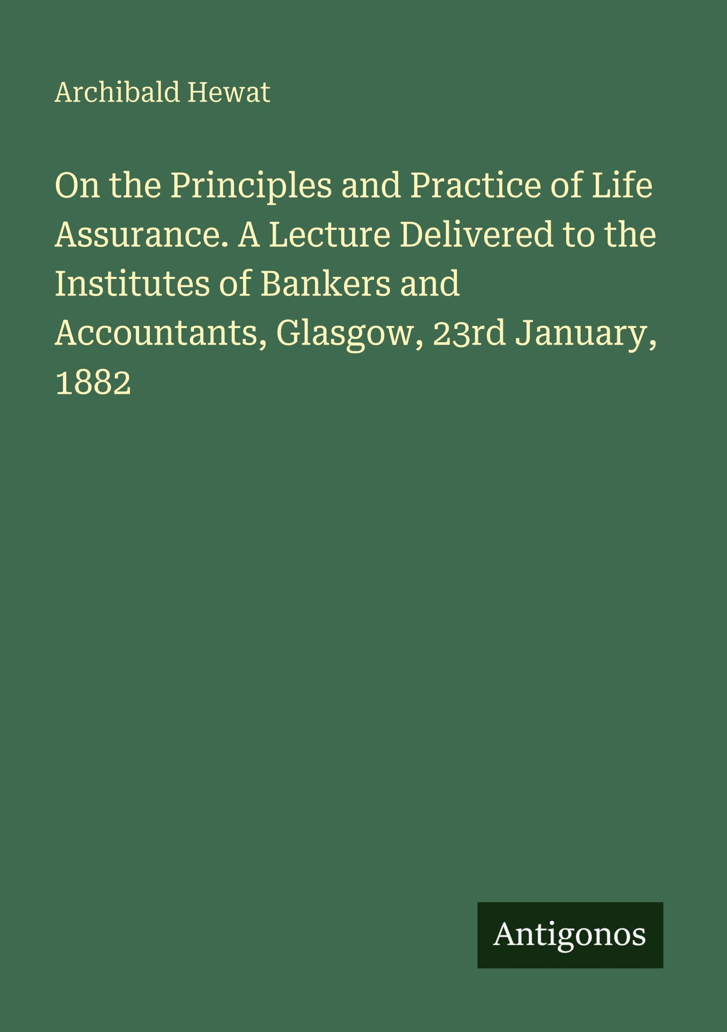 Archibald Hewat: On the Principles and Practice of Life Assurance. A Lecture Delivered to the Institutes of..., Kartoniert / Broschiert