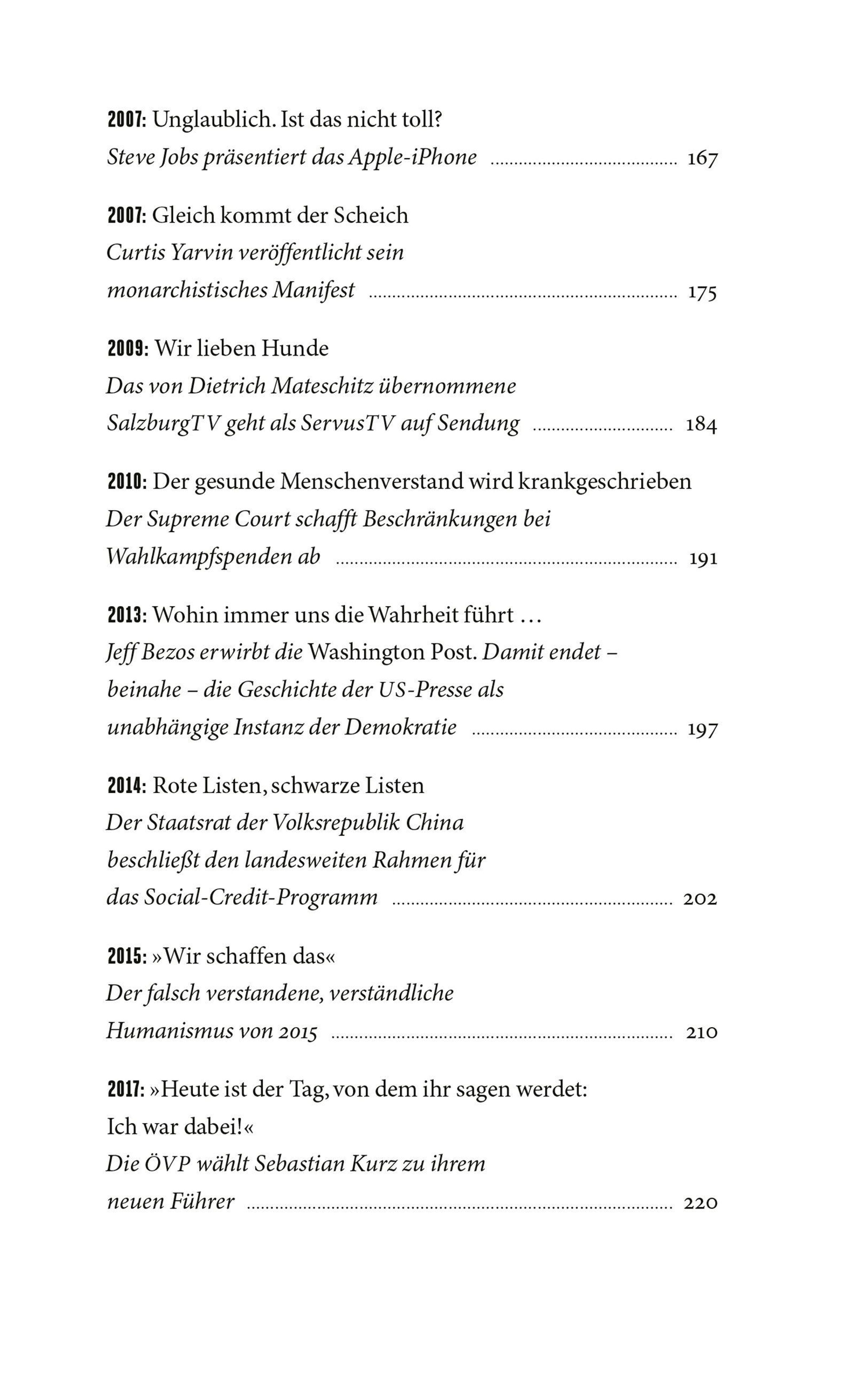 Armin Thurnher über Momente der letzten Jahre, in denen die Geschichte ihren fatalen Lauf nahm. 'Thurnher gehört zu den scharfsinnigsten Analytikern.' Claudia Kühner, NZZ am Sonntag