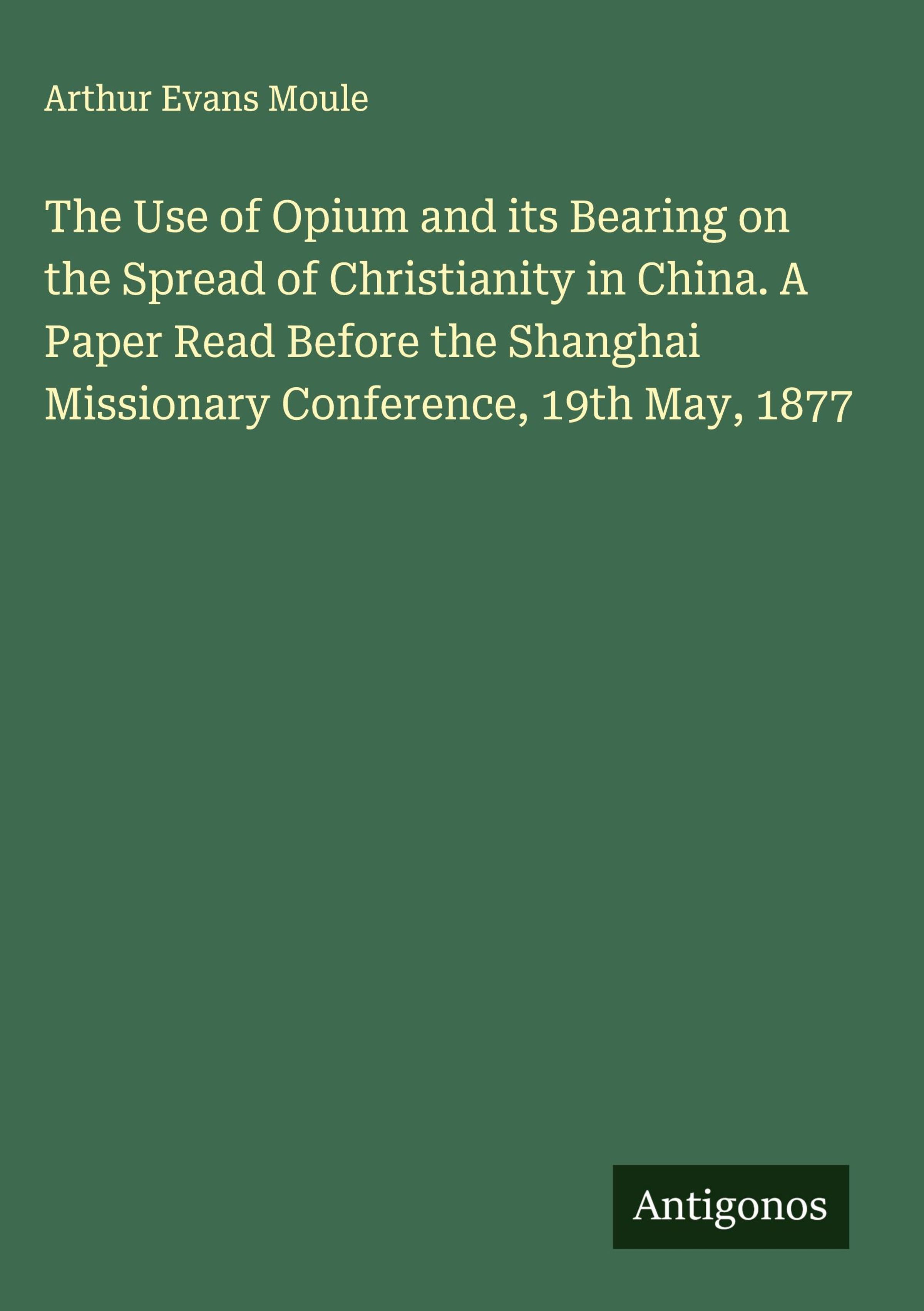Arthur Evans Moule: The Use of Opium and its Bearing on the Spread of Christianity in China. A Paper Read Before..., Gebunden