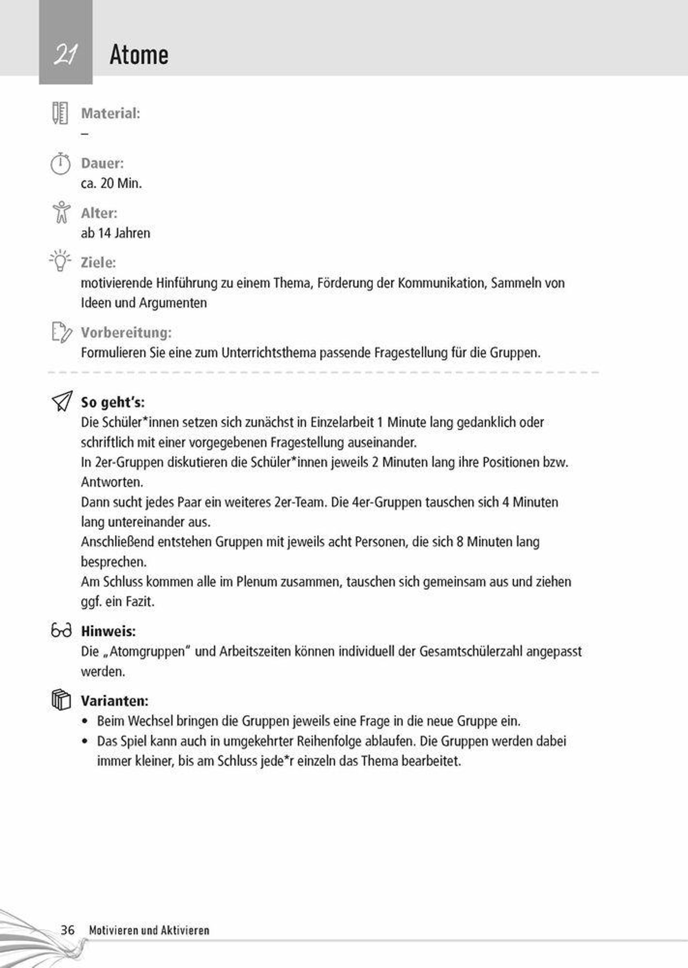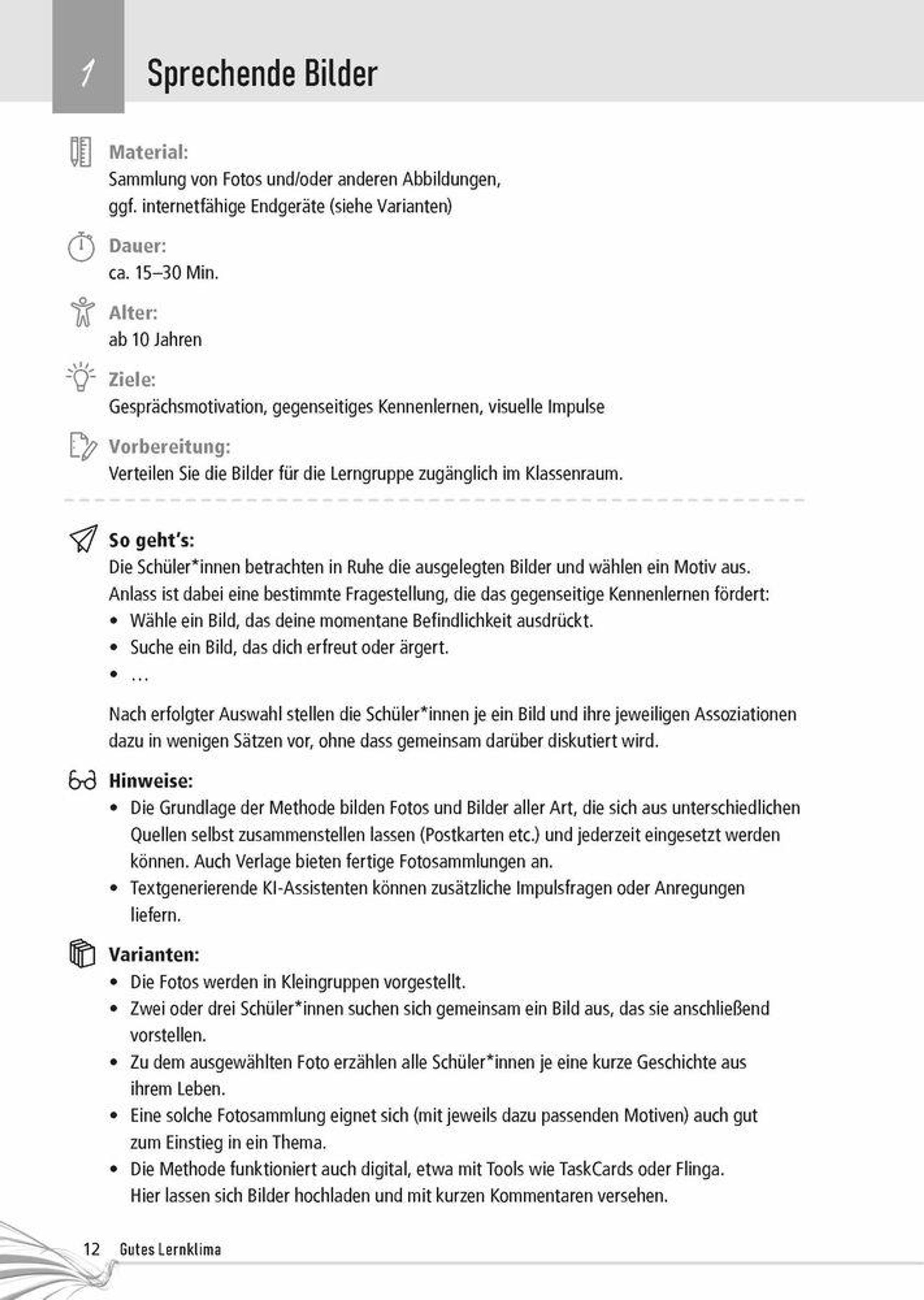 Alle Methoden sind fächerübergreifend einsetzbar und sowohl für den Unterricht im Klassenzimmer als auch für digitales Lernen ideal geeignet. Ein echter Methodenfundus - vom Einstieg bis zur Reflexion.