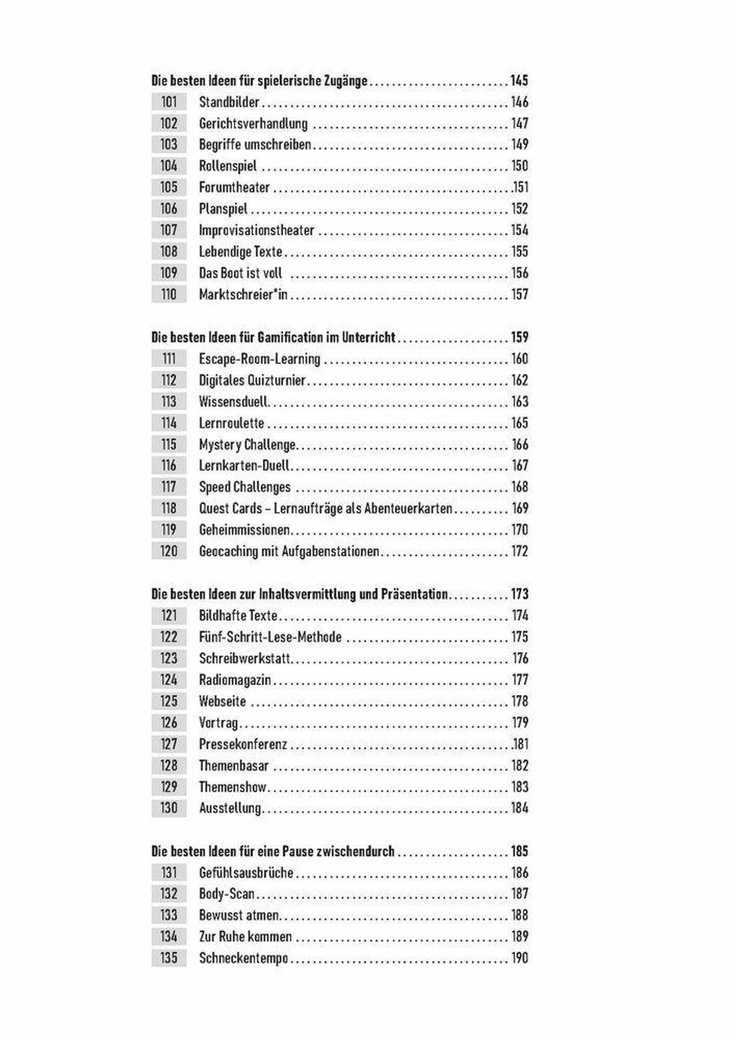 Dieses Standardwerk für die Praxis bietet eine Fülle an Unterrichtsmethoden , um flexibel durch alle Lernphasen zu navigieren. Ob aktivierende Einstiege, kreative Wiederholungsformen oder Feedback am Ende einer Unterrichtseinheit - in diesem Band finden sich bewährte Klassiker und neue Ansätze zur Förderung von Motivation, Kooperation, Kreativität.