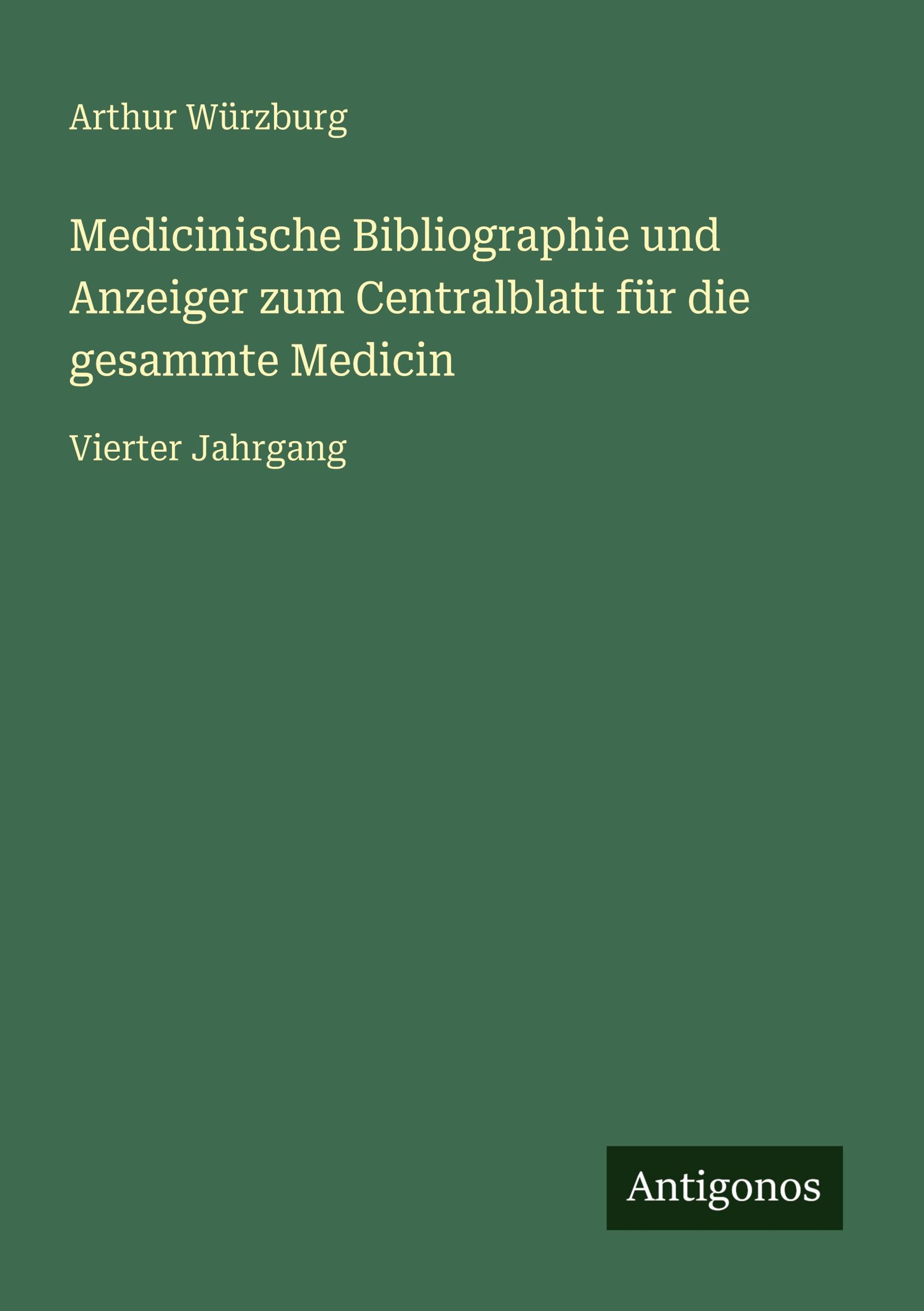 Arthur Würzburg: Medicinische Bibliographie und Anzeiger zum Centralblatt für die gesammte Medicin, Kartoniert / Broschiert