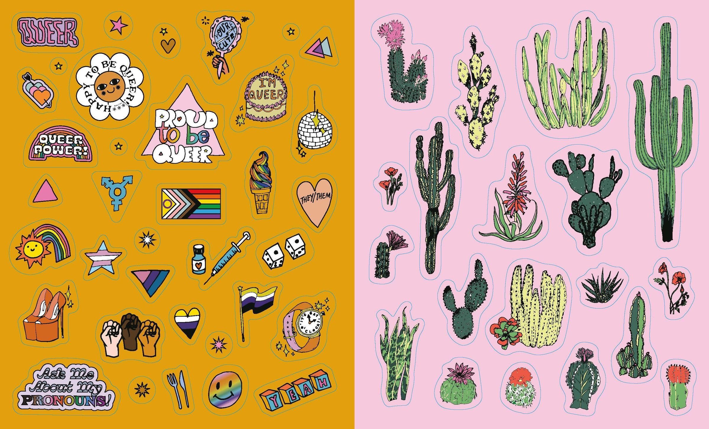 From flags and rainbows to queer slogans (Gay All Day, Queer All Year) and declarations (Protect Trans Kids), you'll find hundreds of ways to joyfully share LGBTQIA+ pride in The Big Book of Queer Stickers.