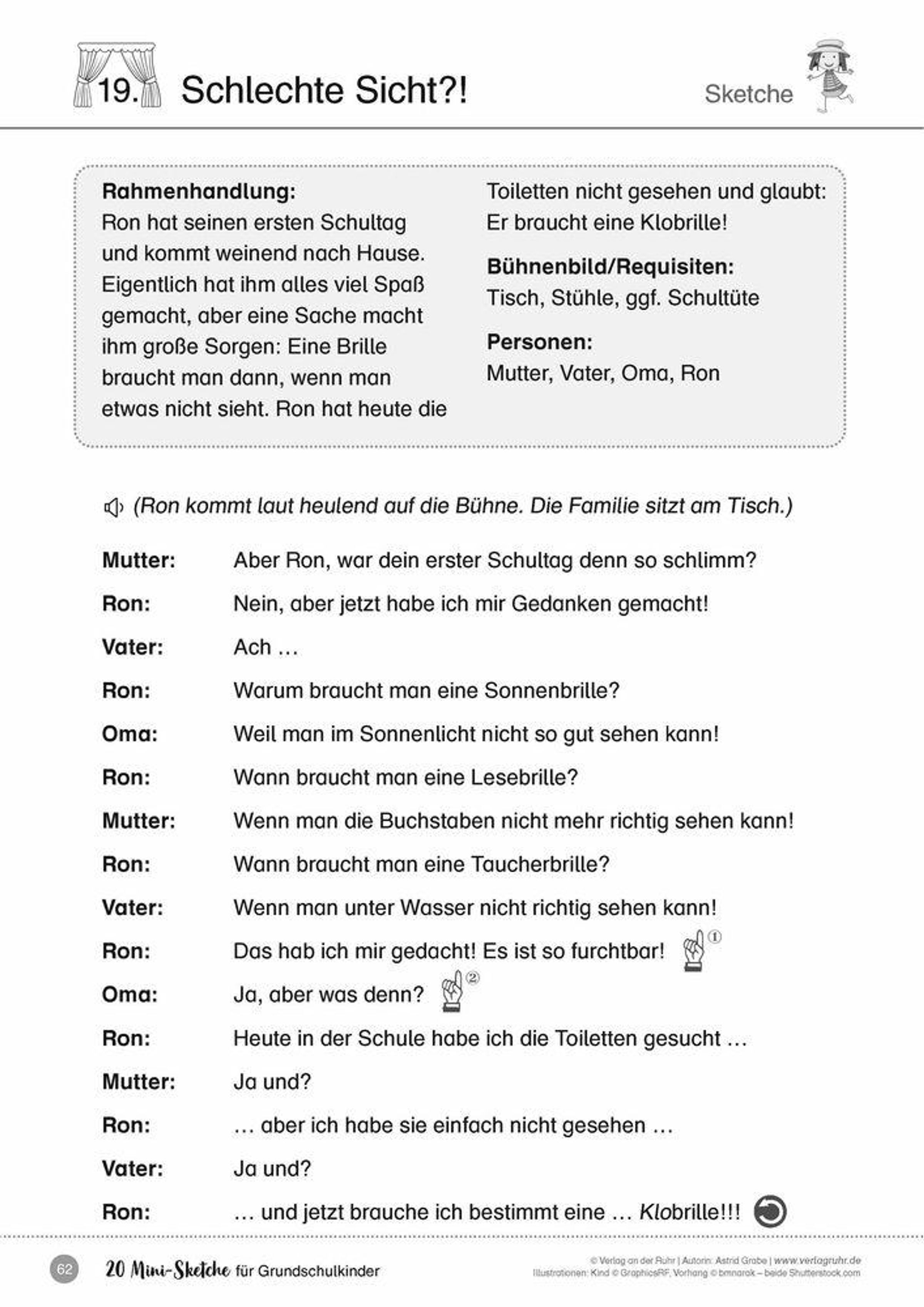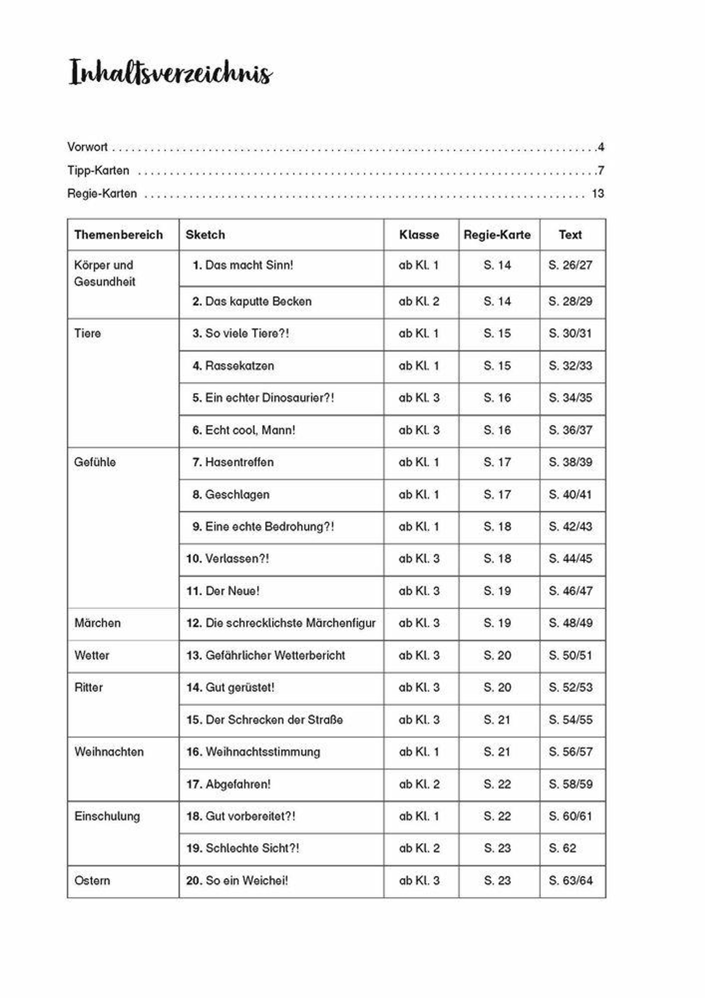 Kopiervorlagen für Kinder an Grundschulen, Förderschulen, Fach Deutsch, Klasse 1-4 +++ Vorhang auf und Bühne frei für alle Nachwuchs-Comedians! Diese 20 Sketche für die Grundschule, vom Anspruchsniveau auf die Schulstufen 1 / 2 und 3 / 4 abgestimmt, machen kleine Aufführungen zum Kinderspiel. Unser Motto: Einfach lachen und sich amüsieren! Denn mit passenden Tipp- und Regiekarten zu den kurzen Sketchen haben die Kinder den perfekt inszenierten Auftritt. Garantiert ohne aufwändige Bühnenbilder und Requisiten - aber mit Platz für Improvisationen! Mit Wort- und Handlungswitz können Sie typische schulische Anlässe, wie Einschulung oder Abschiedsfeier, köstlich witzig verpacken. Die kleinen Theaterstücke zu den sachunterrichtlichen und jahreszeitlichen Themen, wie z. B. "Wetter", "Tiere", "Ritter" oder "Weihnachten", sorgen für eine gelungene Abwechslung während Ihres Unterrichts. Bei den Sketchen für die Klasse 1 / 2 leiten Sie die Kinder mithilfe wichtiger Umsetzungstipps an. Zudem sind hier die Schriftgröße und die Textmenge auf die jungen Leser und Leser*innen abgestimmt . Die Materialien für die Klasse 3 / 4 ermöglichen es den Kindern, die kurzweiligen Szenen nach und nach selbstständig umzusetzen.