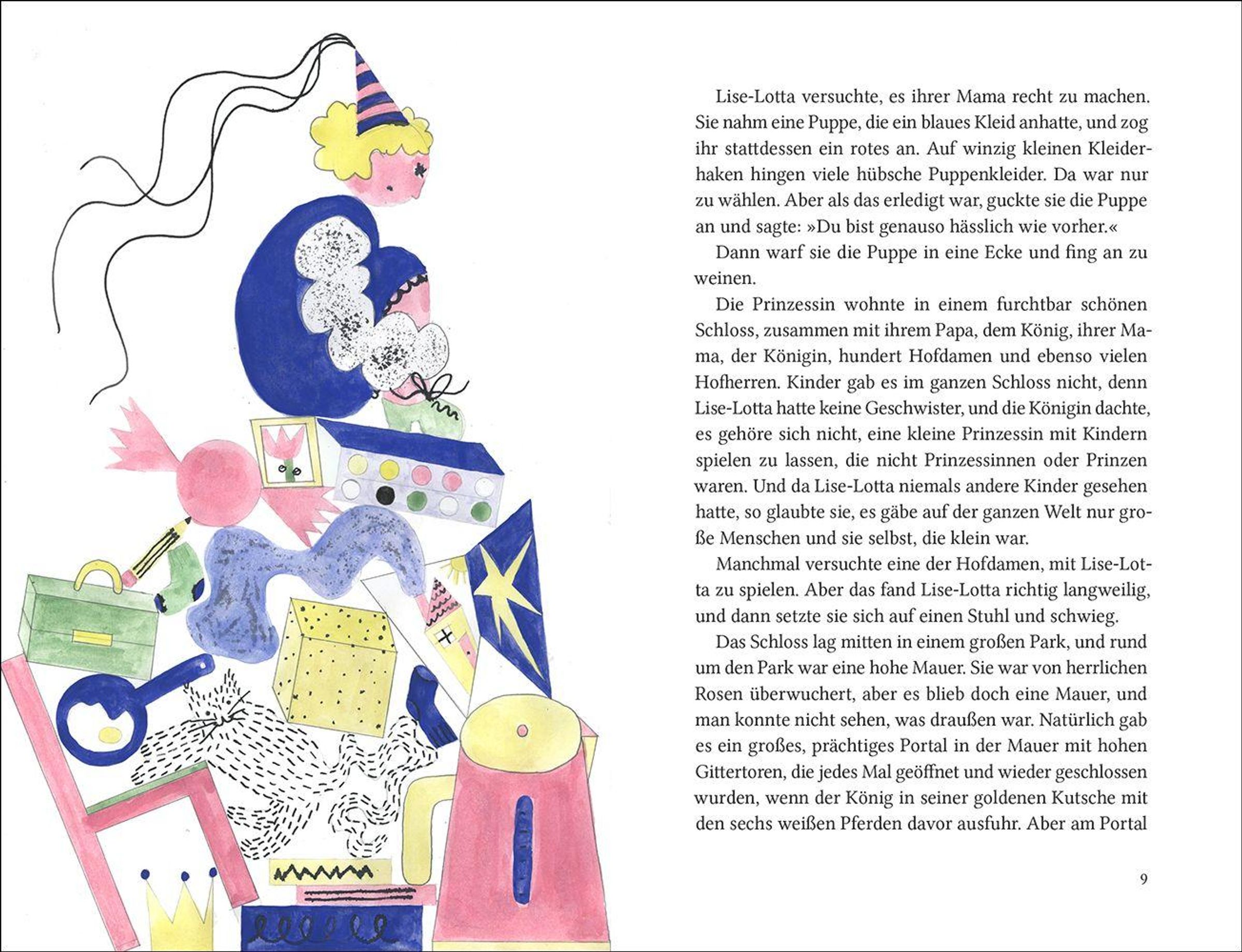 Die Prinzessin hat alles, wovon ein Mädchen nur träumen kann. Man glaubt, in einem Spielwarenladen zu stehen, wenn man ihr Kinderzimmer betritt: die schönsten Puppen und Stofftiere, Puppenmöbel mit allen Accessoires, ein Kaufmannsladen, alles vorhanden. Aber spielen mag sie trotzdem nicht. Allein macht es keinen Spaß und die Erwachsenen können es einfach nicht. Da begegnet ihr im Schlosspark zufällig Maja, die ihre abgenutzte Puppe Pia im Arm hält. Und mit den beiden klappt es mit dem Spielen auf Anhieb! Ob Maja ihr diese Pia schenken kann? Der Band enthält drei zauberhafte Märchen von Astrid Lindgren, Pauline Saul hat die Texte der weltberühmten schwedischen Autorin farbig und spielerisch in Szene gesetzt.