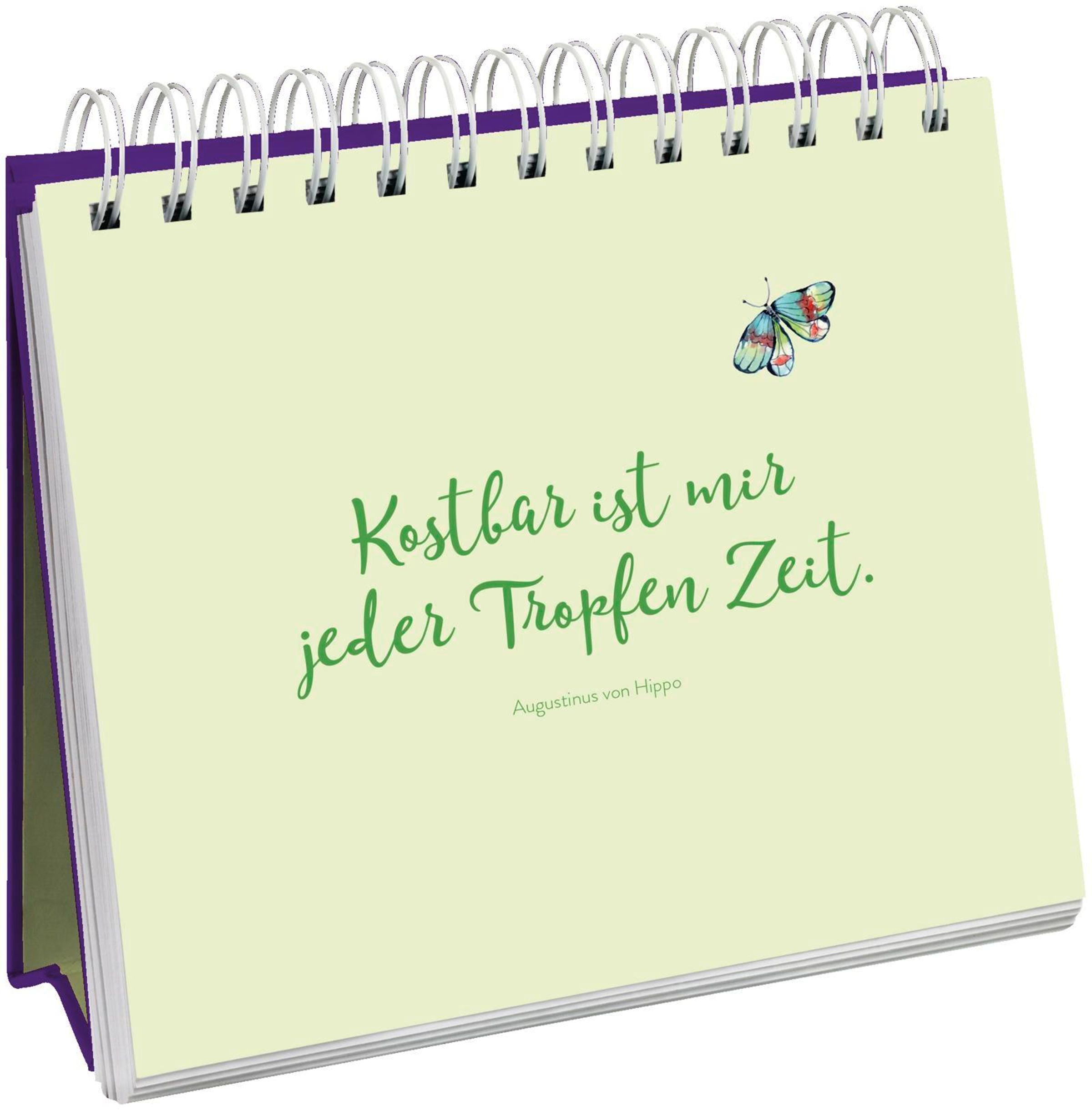 Ob überwältigendes Landschafts-Panorama oder facettenreicher Schmetterlingsflügel: Die großformatigen Bilder laden dich ein, dir eine kleine Auszeit zu gönnen, den Alltag zu entschleunigen und ein bisschen Entspannung zu finden. Stimmungsvolle Sprüche und Zitate zu den Themen Achtsamkeit und bewusster leben runden den Spiralaufsteller ab. Mal nachdenklich, mal motivierend, immer jedoch positiv, schenken dir die Sprüche gute Gedanken für jeden Tag. Der dekorative Aufsteller ist pure Wellness für die Seele und natürlich auch ein liebevolles Geschenk für deine Freundin, Mutter oder Schwester.