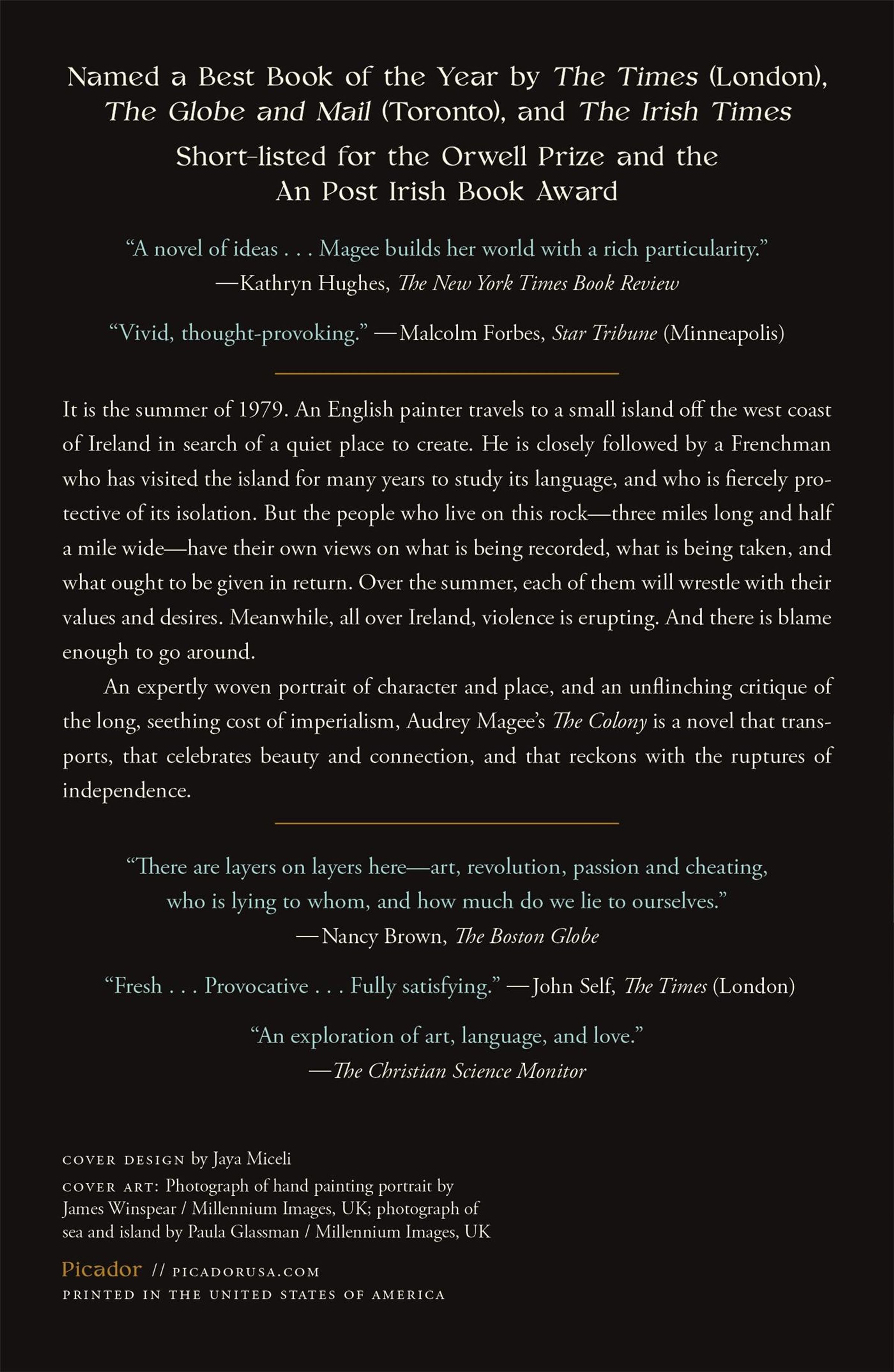 An expertly woven portrait of character and place, a stirring investigation into yearning to find one's way, and an unflinchingly political critique of the long, seething cost of imperialism, Audrey Magee's The Colony is a novel that transports, that celebrates beauty and connection, and that reckons with the inevitable ruptures of independence.