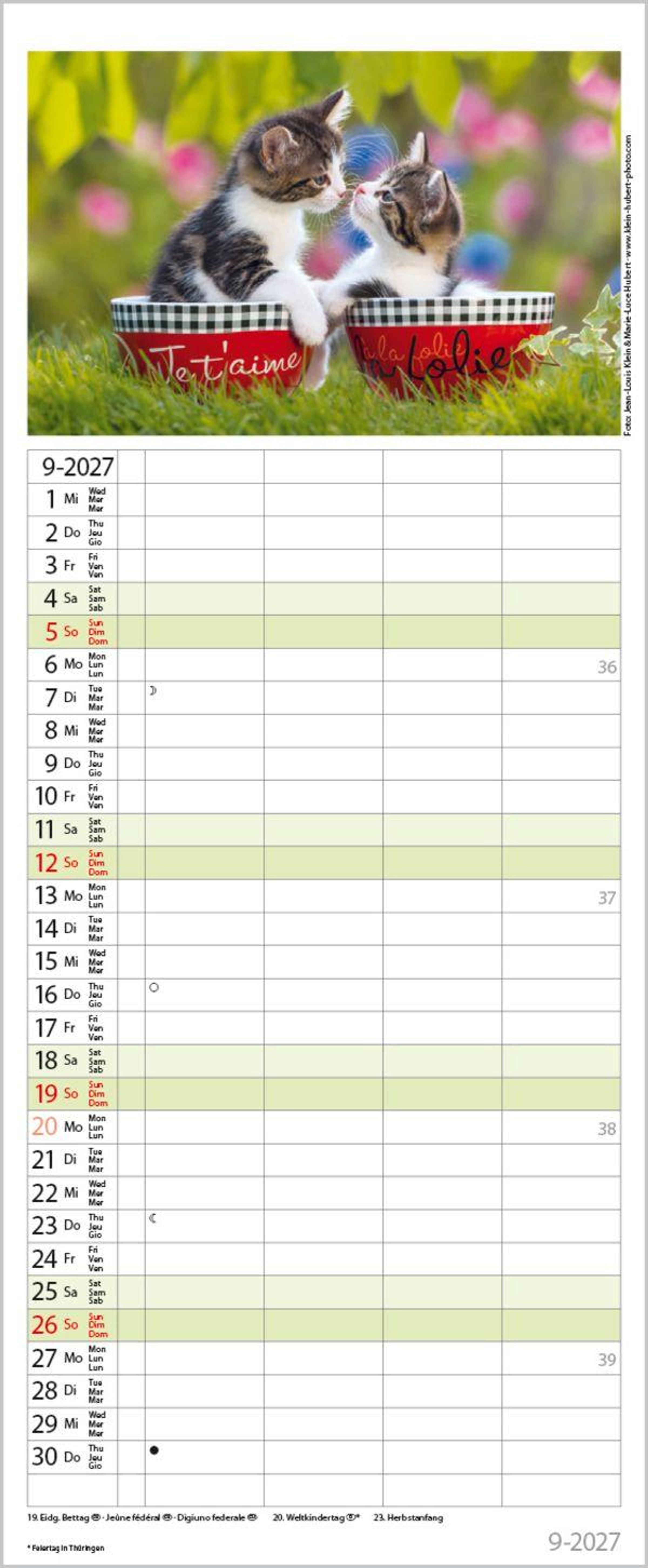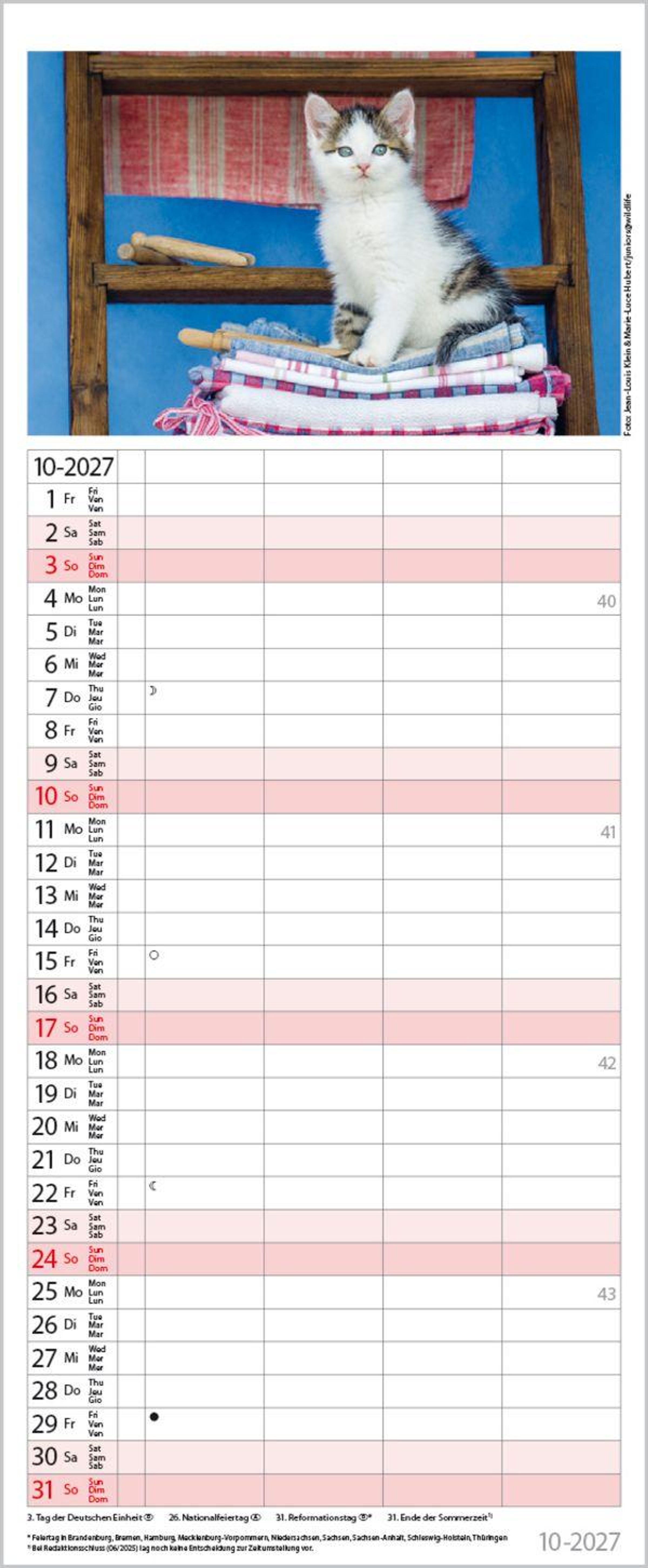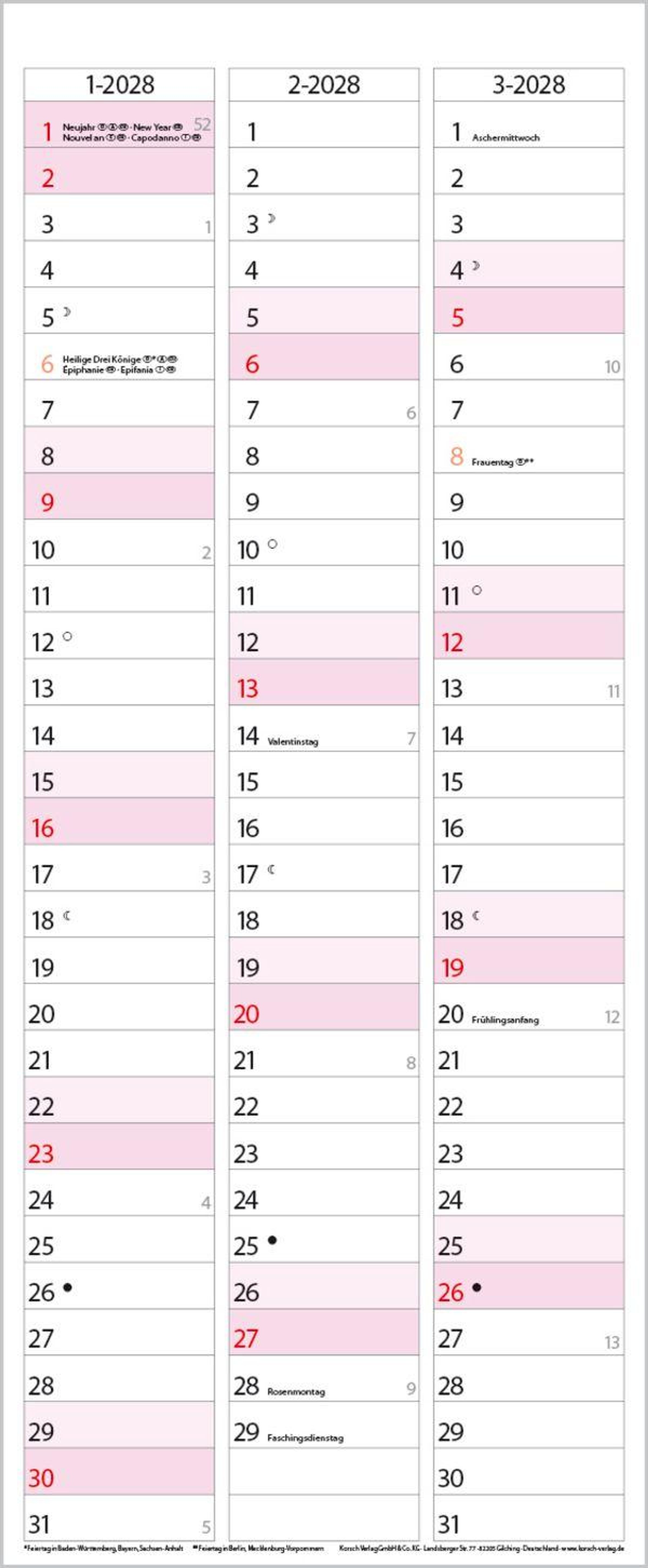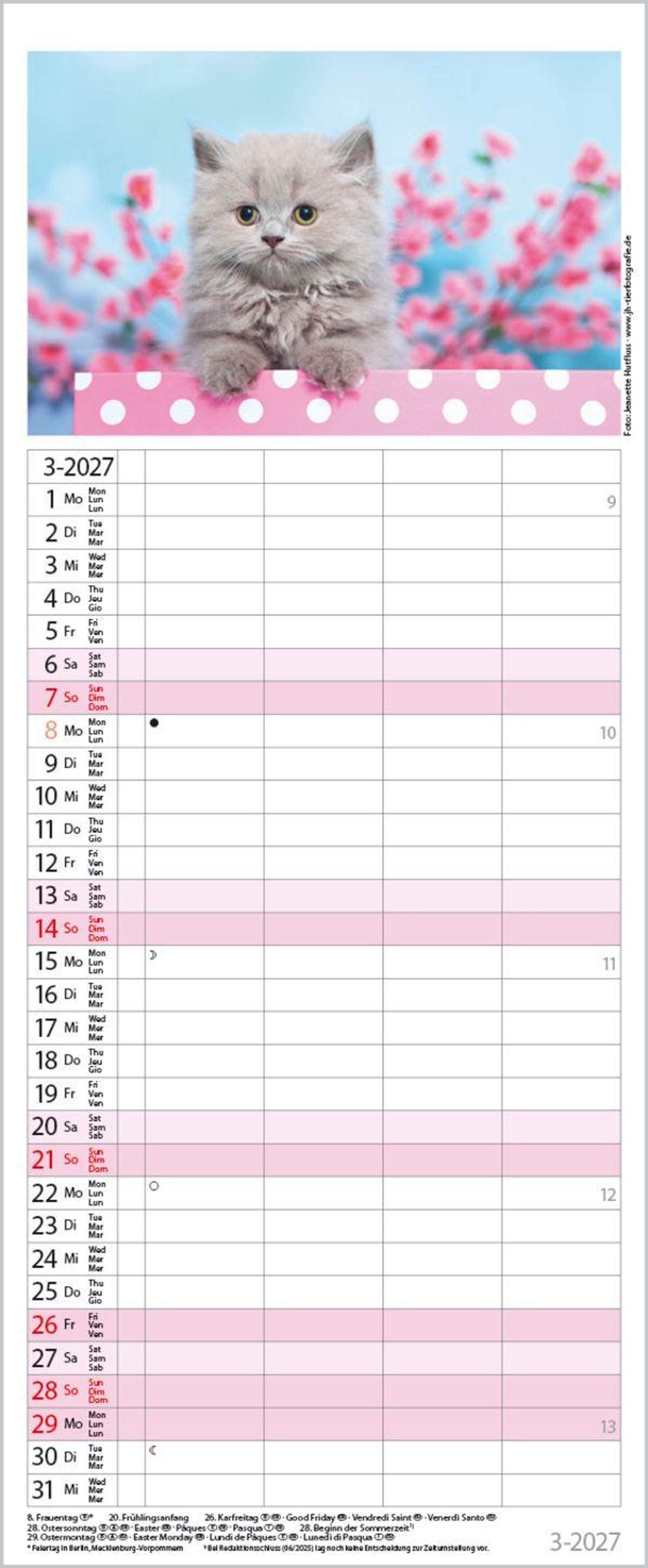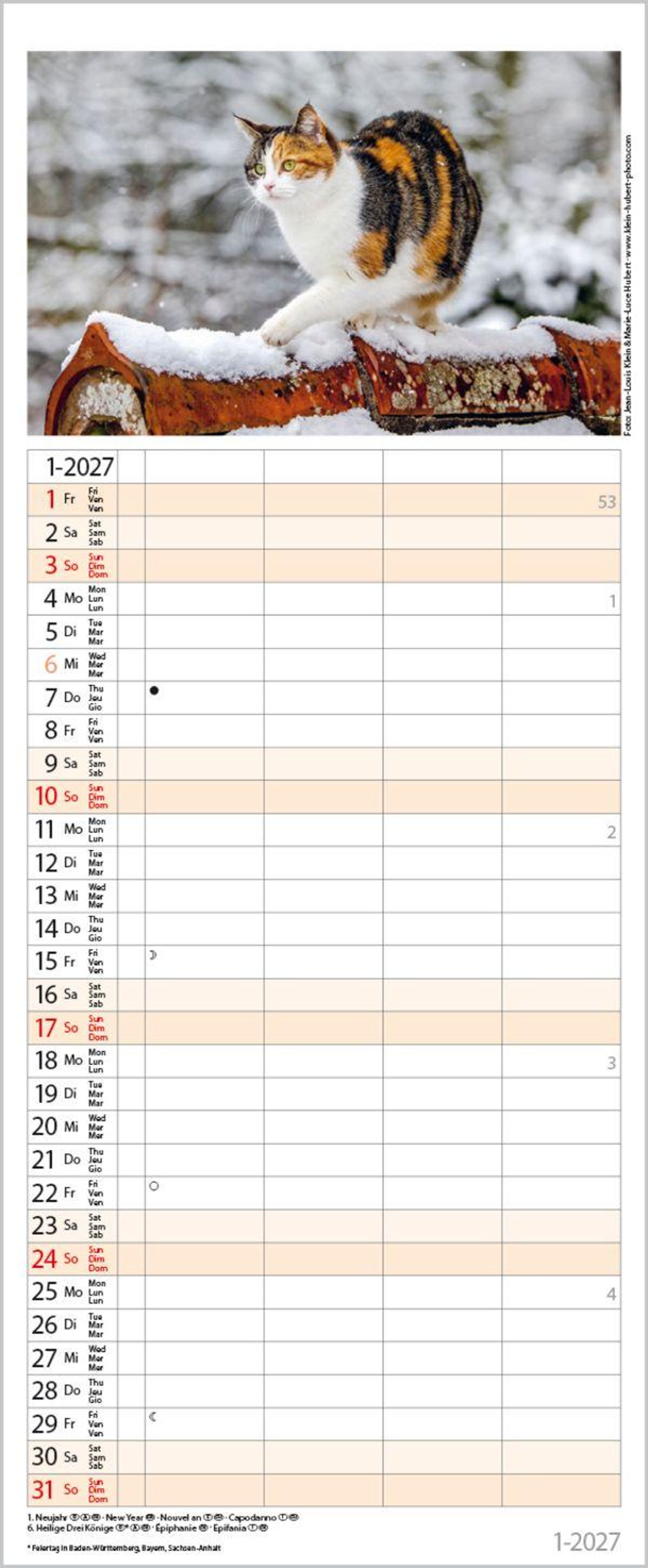 - Familienplaner mit 4 breiten Spalten. Hochwertiger Familienkalender mit Ferienterminen und Vorschau bis März 2027. 19 x 46 cm.