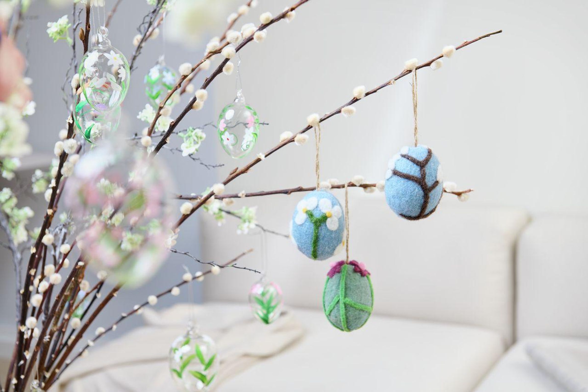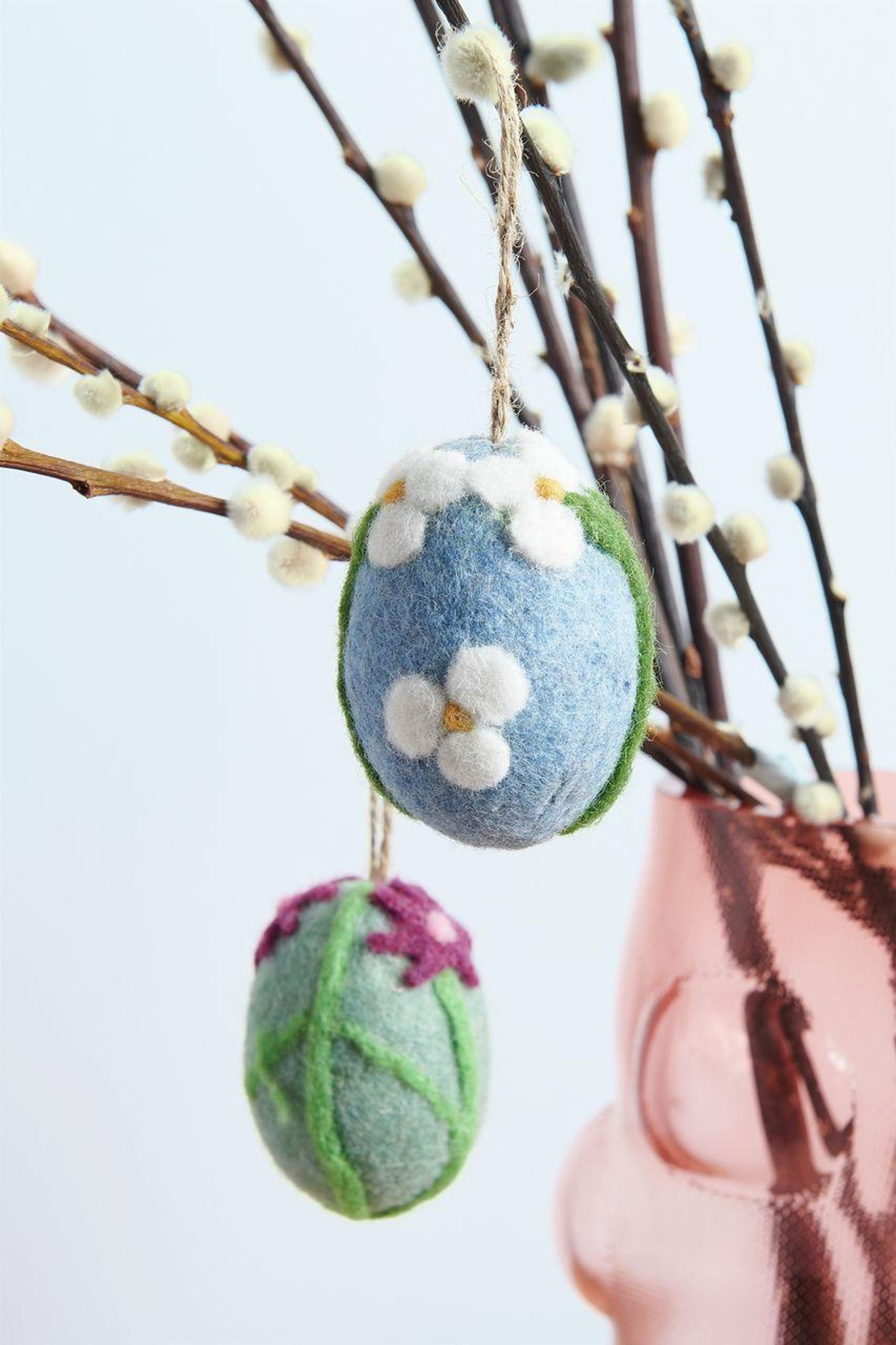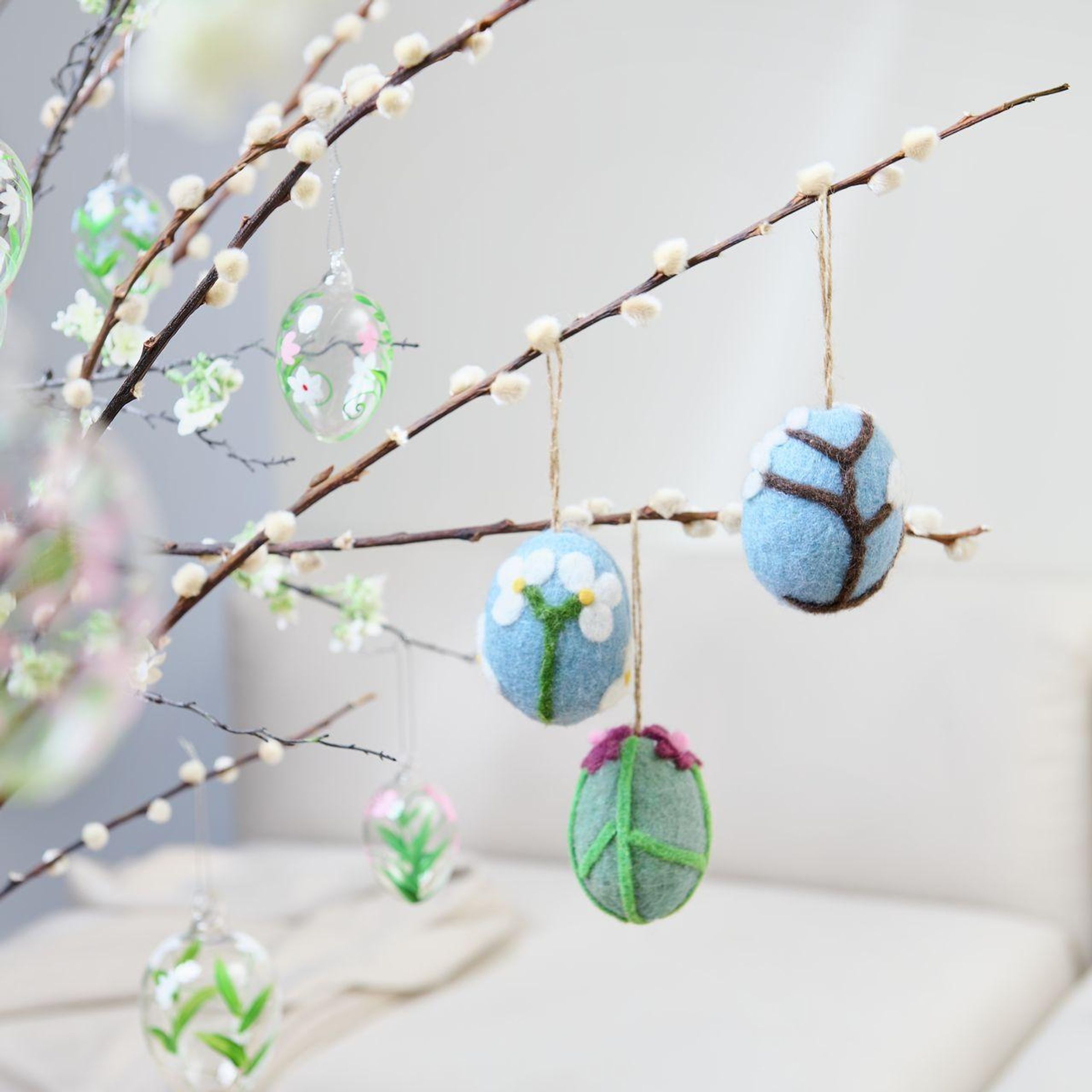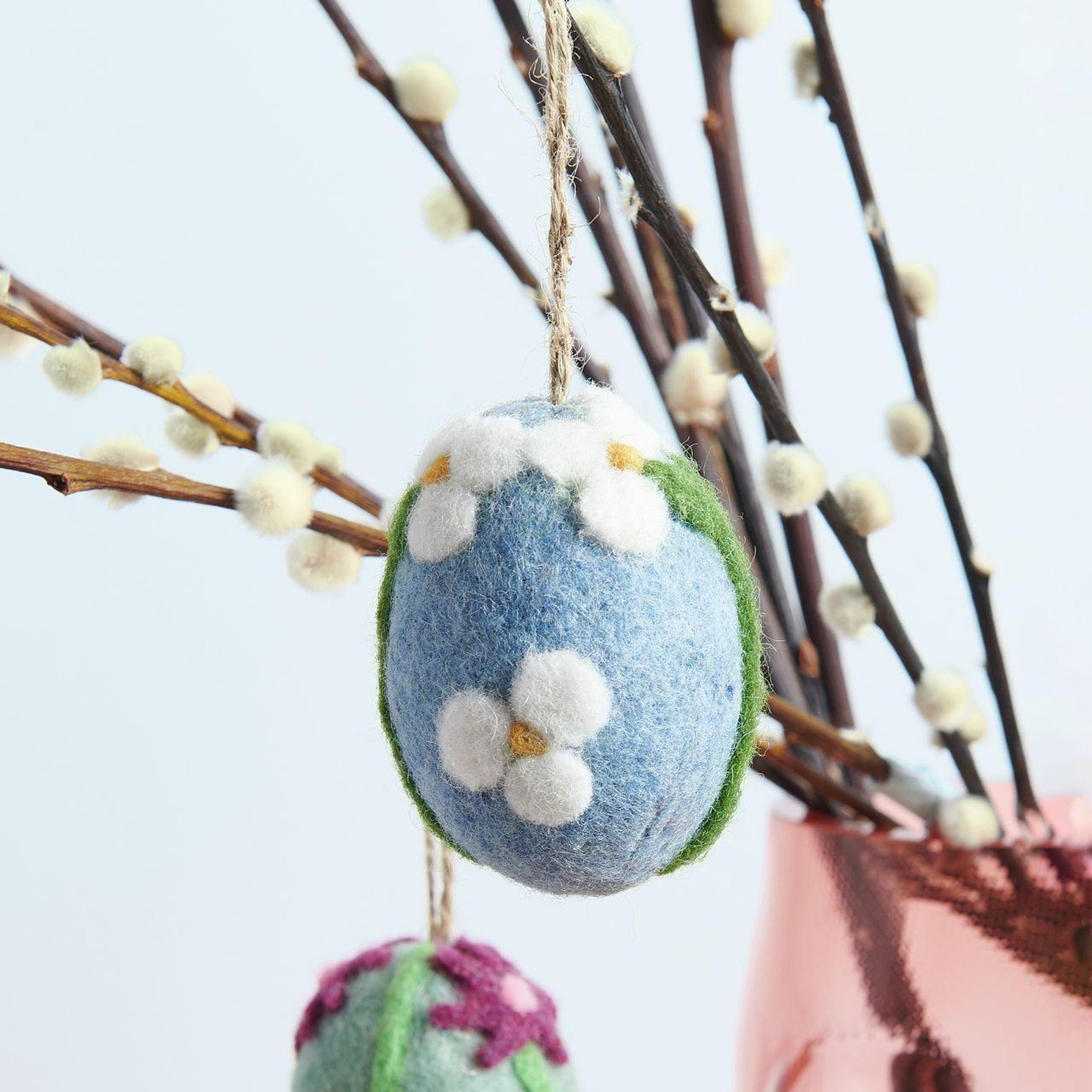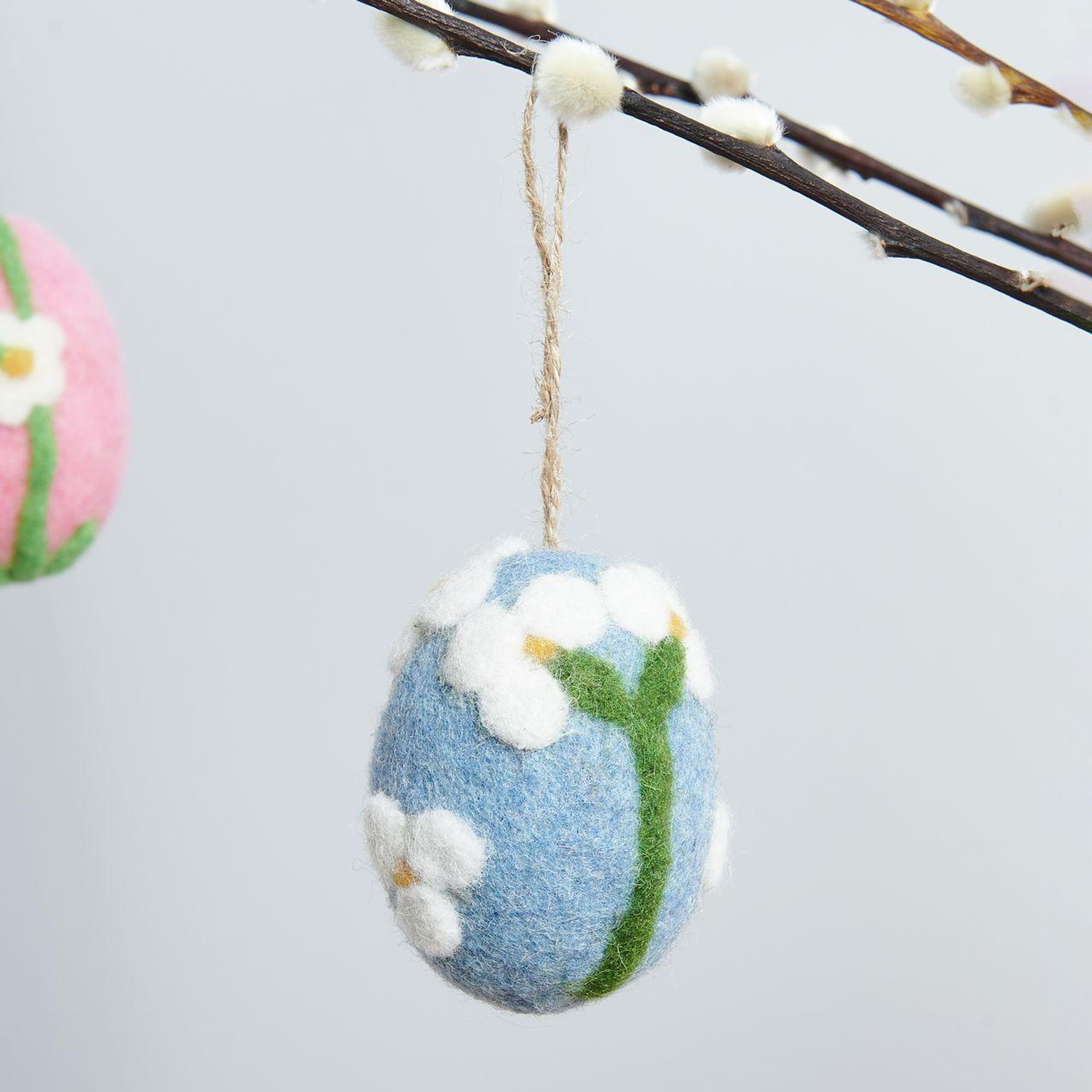 Aufhänger Filz-Ei Apfelblüte, Blau, 7,8 x Ø 5,8cm (Sonstige Artikel)