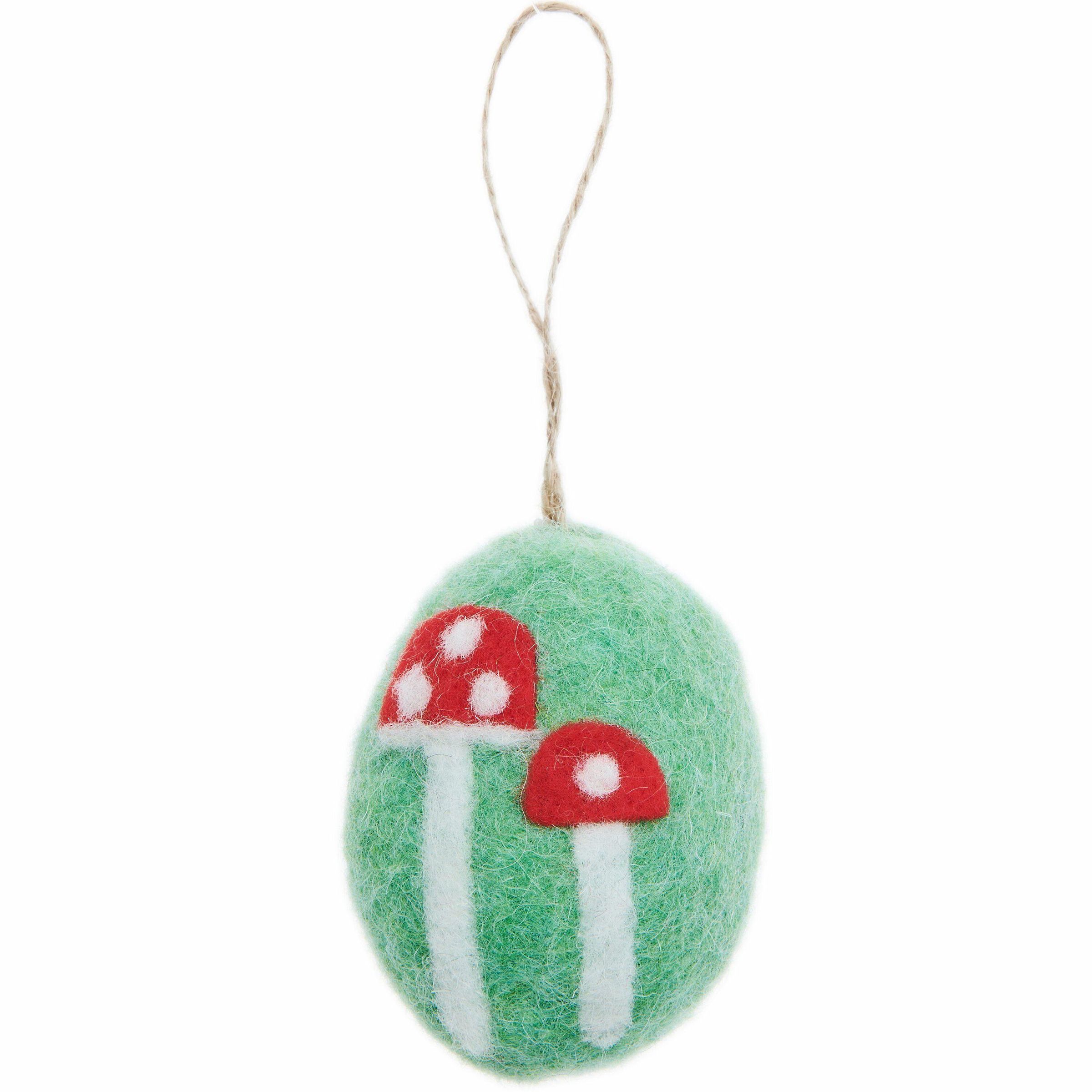 Aufhänger Filz-Ei Fliegenpilz, Grün, 7,8 x Ø 5,8cm