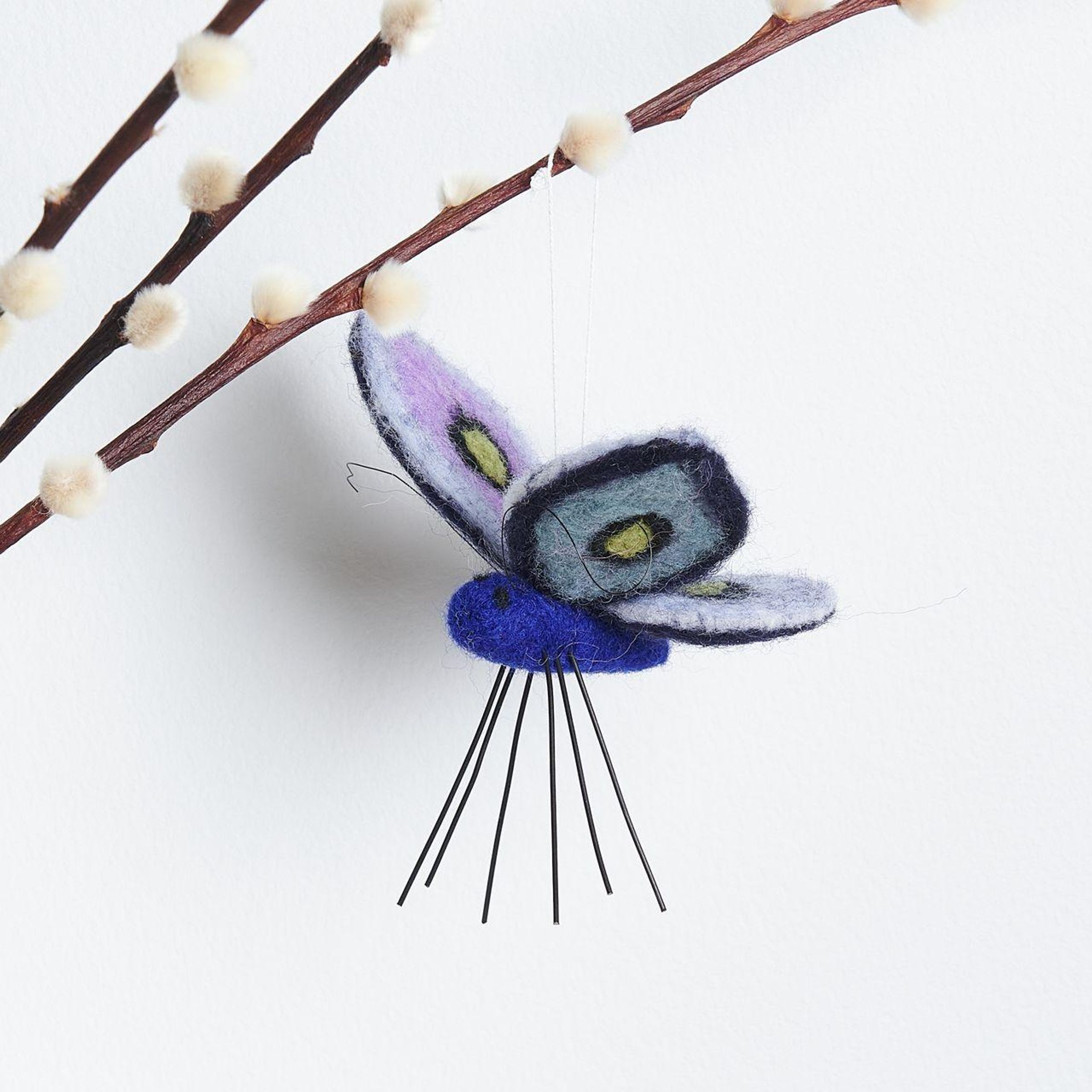 Der handgefilzte Filz-Aufhänger in Schmetterlingsform besticht durch seine weiche Struktur und die hochwertige Verarbeitung aus reiner Wolle. Das detailreiche Design verleiht jeder Frühlingsdekoration einen natürlichen und verspielten Akzent. Durch das Filzmaterial bleibt der Schmetterling stabil in seiner Form und eignet sich ideal zum Aufhängen.