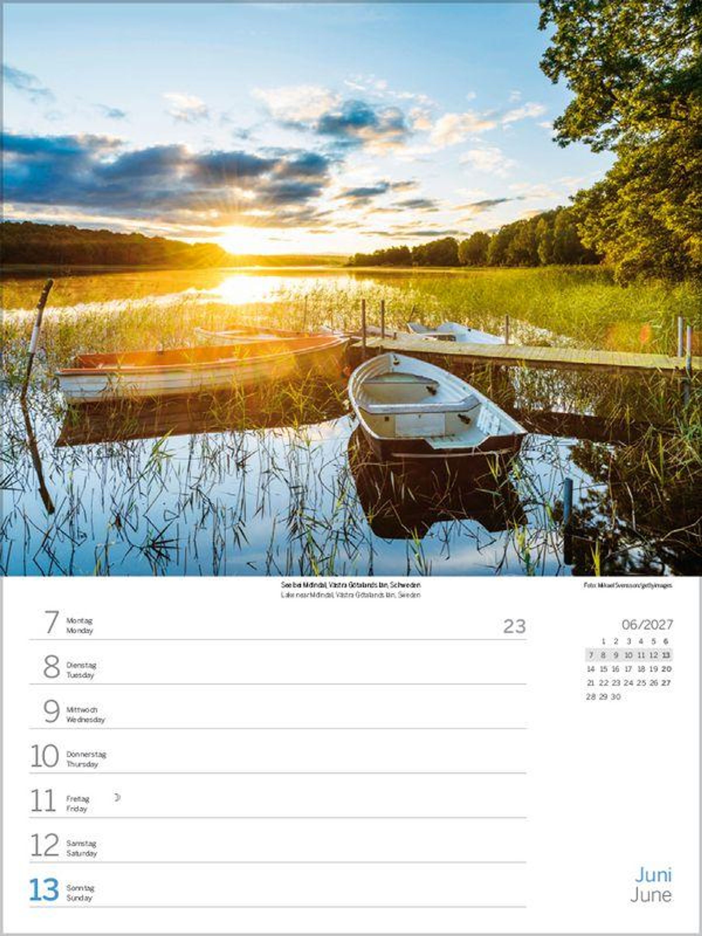Beim Betrachten der harmonischen Landschaftsfotos in diesem Kalender fühlt man sich ein bisschen wie bei einer Meditation. Die Aufnahmen voller Poesie entspannen die Seele und l ösen die Gedanken - wie eine nebenwirkungsfreie Medizin gegen Alltagshektik und Stress. Das übersichtliche Kalendarium bietet zudem Platz für Eintragungen und Termine. Mit Klimabeitrag hergestellt auf nachhaltig produziertem Papier.