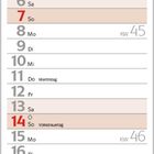 Kalendarium auf Deutsch mit hervorgehobenen Sonn- und Feiertagen für D, A und CH