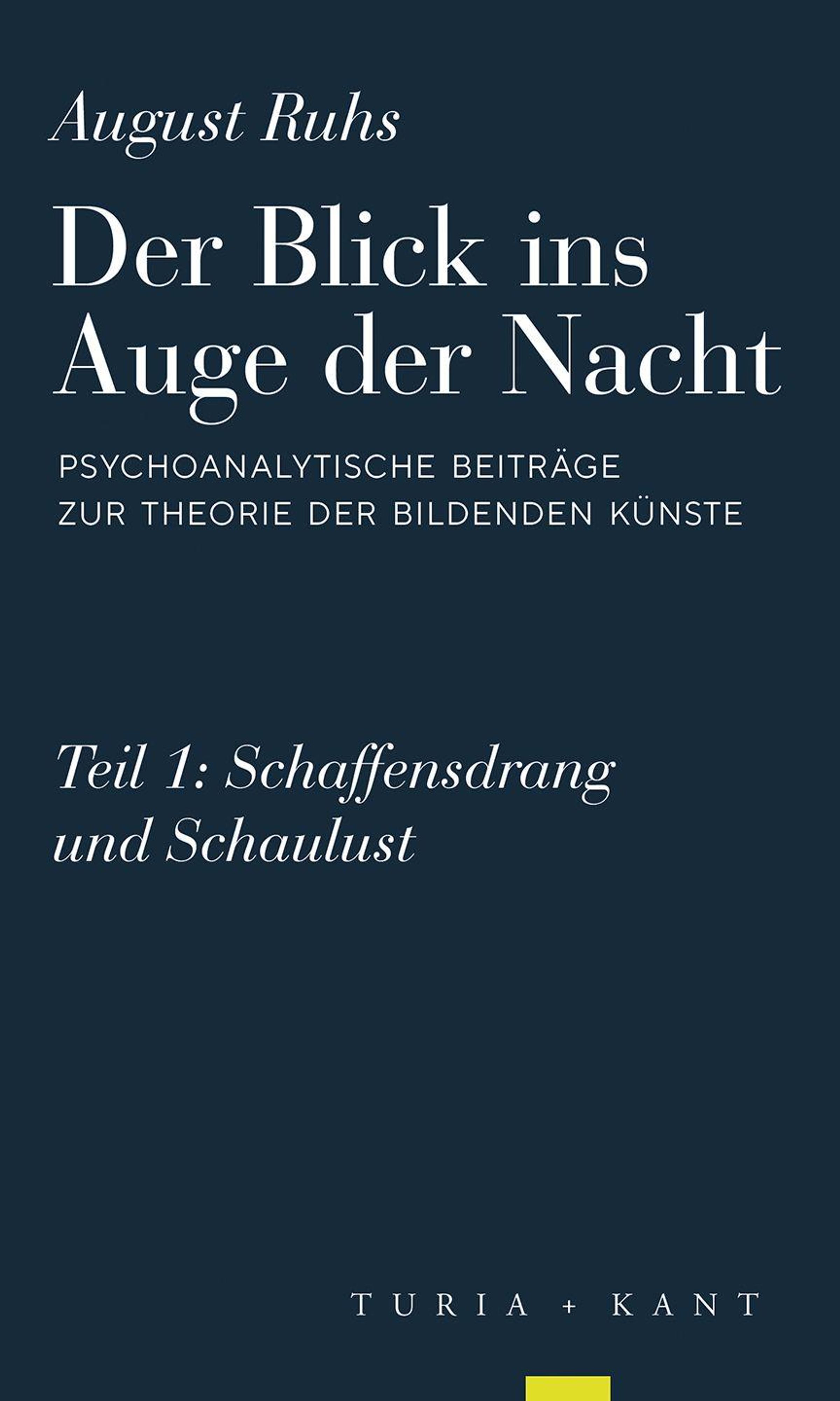 Text: "August Ruhs, Der Blick ins Auge der Nacht". Dunkler Hintergrund, eleganter Schriftzug, Verlag: Turia + Kant., Buch