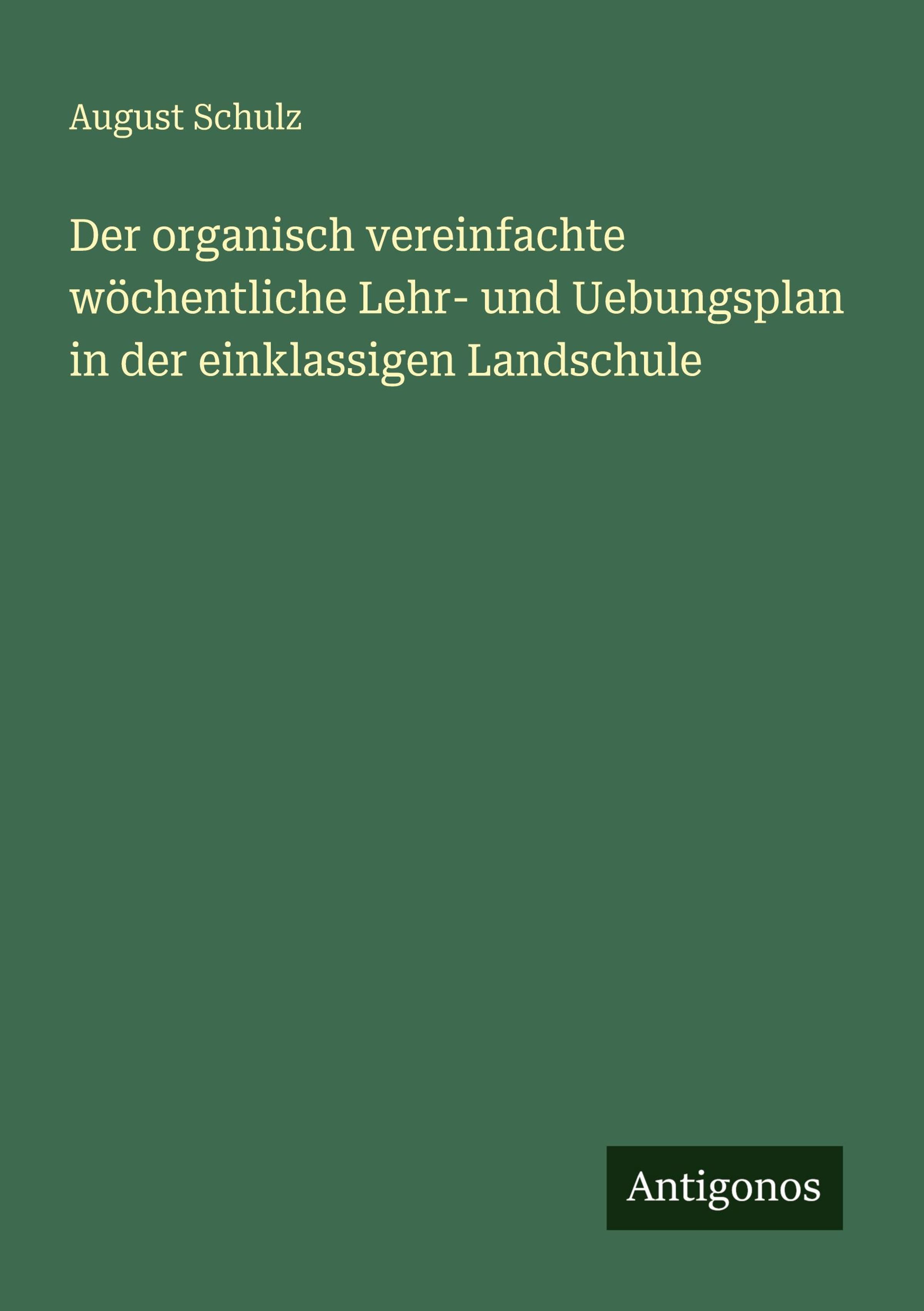 August Schulz: Der organisch vereinfachte wöchentliche Lehr- und Uebungsplan in der einklassigen Landschule, Kartoniert / Broschiert