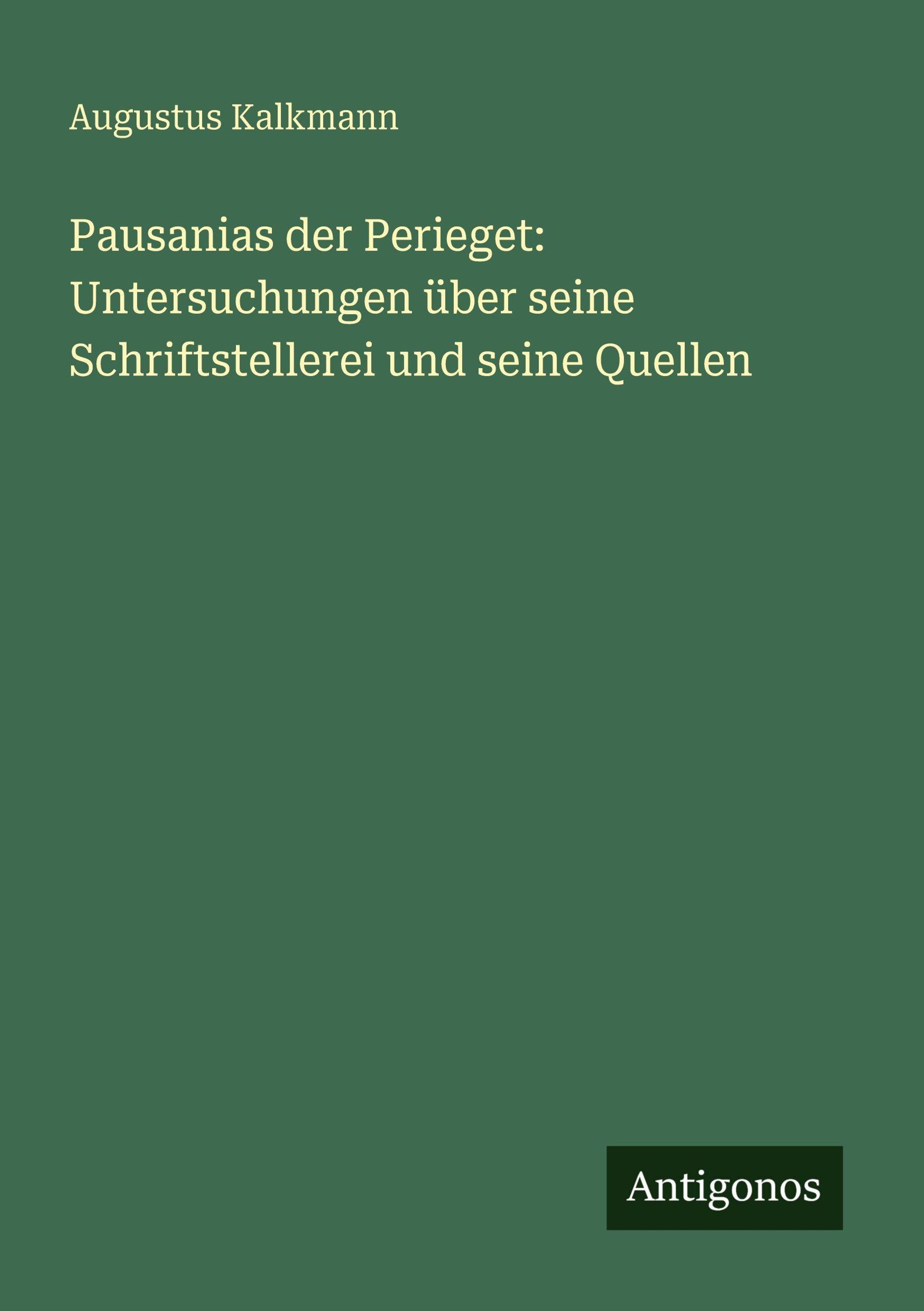 Augustus Kalkmann: Pausanias der Perieget: Untersuchungen über seine Schriftstellerei und seine Quellen, Kartoniert / Broschiert