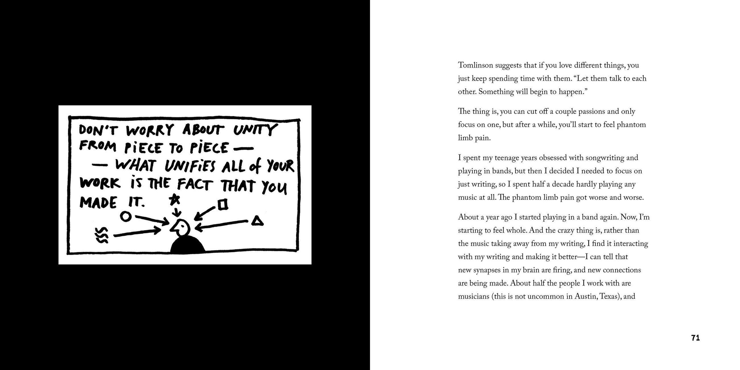 Celebrate the 10th anniversary of a groundbreaking book on creativity with this limited anniversary hardcover, with a new afterword, color endpapers pulled from Austin Kleon's sketchbooks, and a ribbon marker. Ten years after its initial publication, the message of Steal Like an Artist remains powerful: embrace influence, follow interests wherever they take us, forget old clichés like writing about what you know-instead, write the book that you want to read, make the movie you want to watch. And above all, find the space you need to be wild and daring in your imagination and your work. This 10th anniversary edition includes a new afterword by the author, discussing the book's influence and how "stealing" has been misunderstood, and offering a unique, personal perspective on a book that's touched so many. Unlock your creativity 1.Steal like an artist. 2.Don't wait until you know who you are to get started. 3.Write the book you want to read. 4.Use your hands. 5.Side projects and hobbies are important. 6.The secret: Do good work and share it with people. 7.Geography is no longer our master. 8.Be nice. (The world is a small town.) 9.Be boring. (It's the only way to get work done.) 10.Creativity is subtraction.