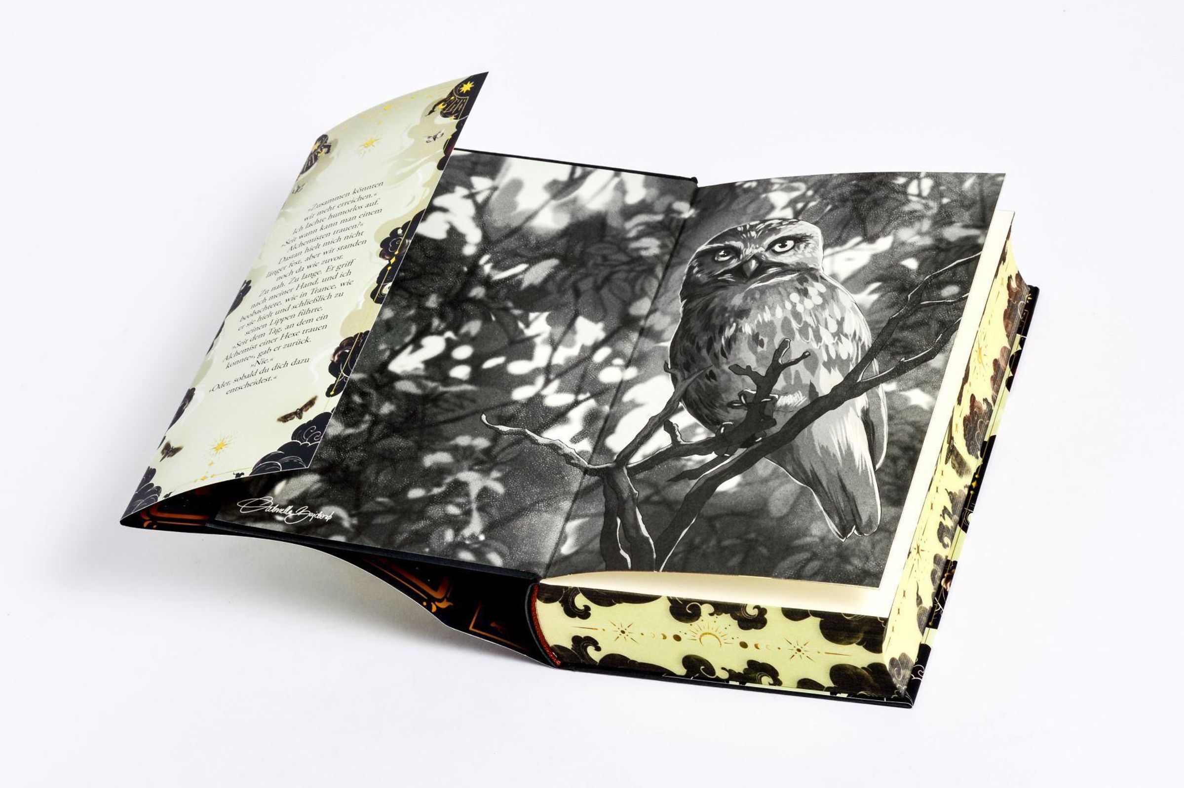 Durch die exklusive Hardcover-Ausstattung wird dieses Buch mit mehrfach veredeltem Wendeumschlag, tollen Illustrationen und exklusivem Farbschnitt in limitierter Erstauflage zu einem absoluten Schmuckstück im Regal! (Coverdesign @alexanderkopainski; illustrierter Wendeumschlag @imjenndove; Illustrationen @gabriella. bujdoso)