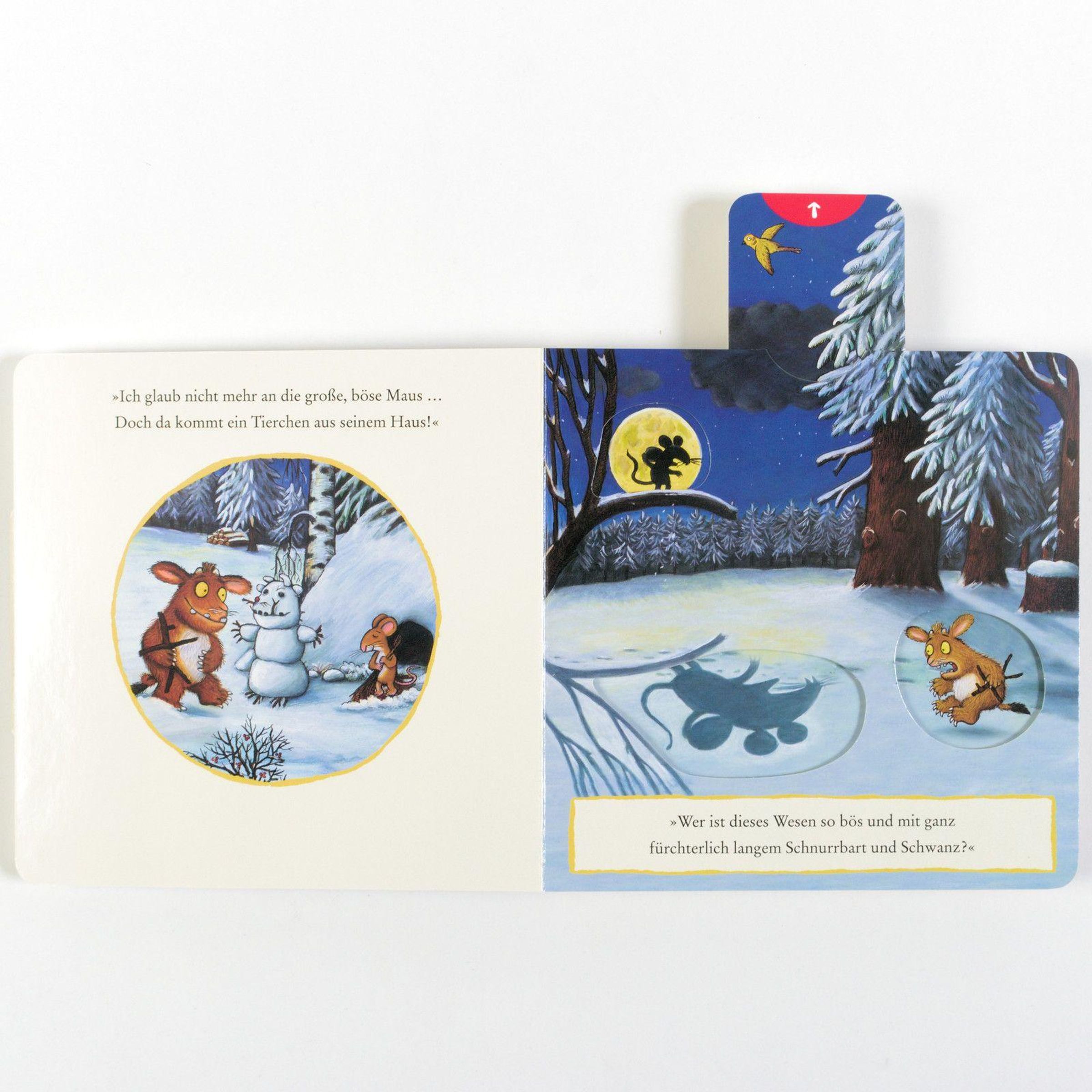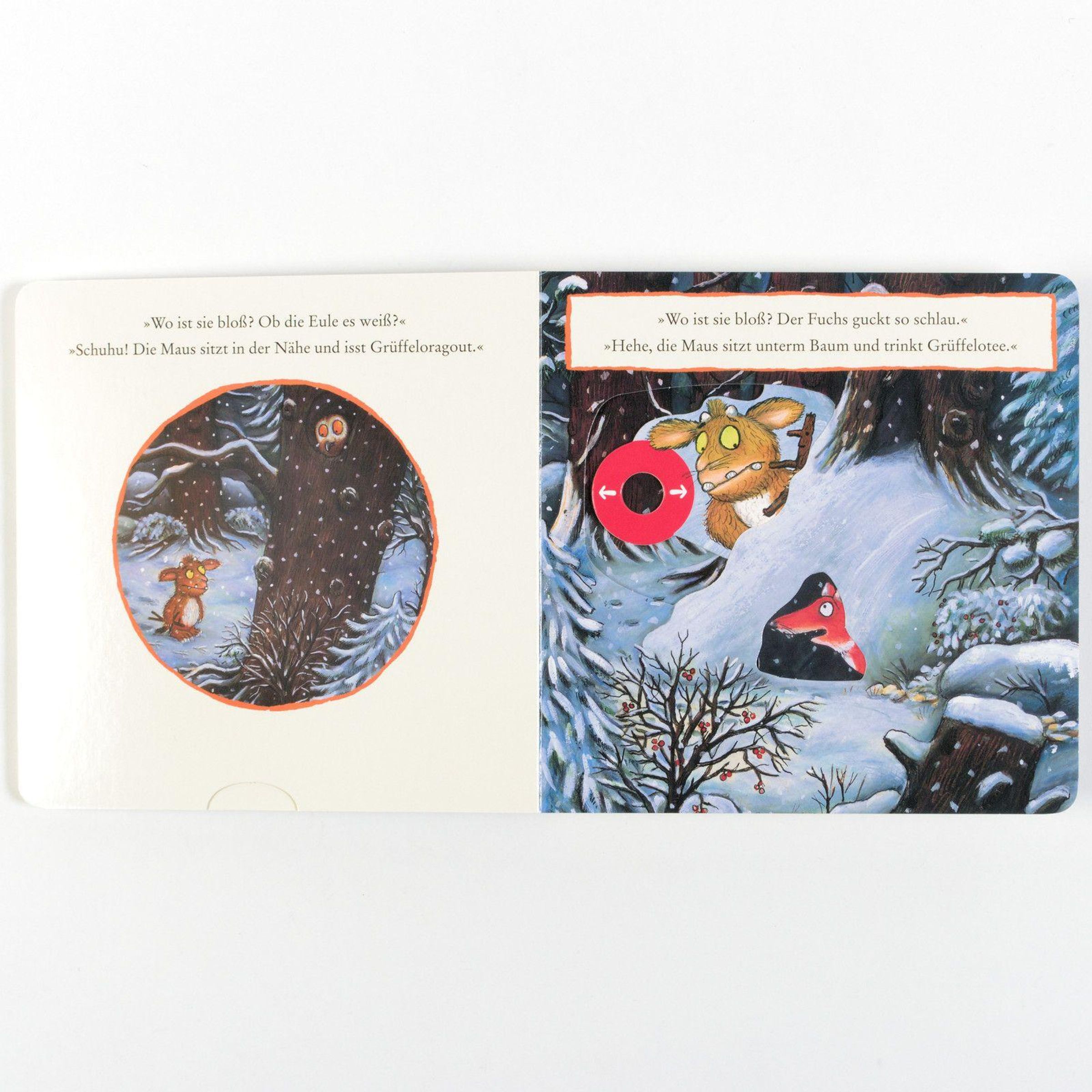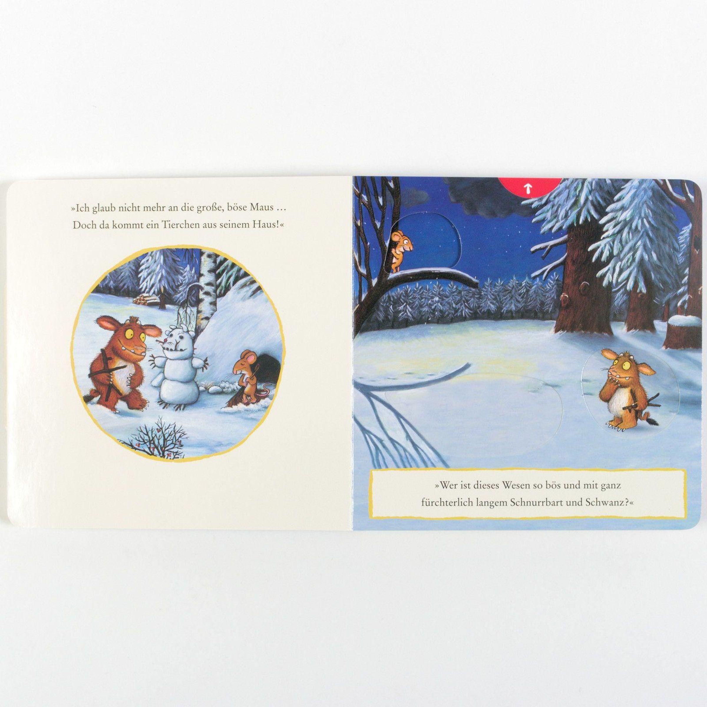 Die berühmte Geschichte vom Grüffelokind als Pappbilderbuch zum Spielen: Der dunkle Wald, so warnt der Grüffelo sein Kind, ist voller Gefahren, dort lebt die große, böse Maus. Das Grüffelokind glaubt ihm nicht und schleicht sich aus der Höhle. Mutig fragt es nacheinander Schlange, Eule und Fuchs, ob es die böse Maus wirklich gibt. Durch einfaches Schieben und Ziehen der Bildelemente können schon ganz kleine neugierige Kinder der Geschichte spielerisch folgen. Das fördert Koordination und Feinmotorik und macht großen Spaß.