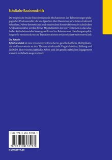 Die empirische Studie fokussiert zentrale Mechanismen der Tabuisierungen pädagogischer Professioneller, die das Sprechen über Rassismus an Schulen strukturell behindern. Neben theoretischen und empirischen Konstruktionen des schulischen Artikulationstabus werden ferner Möglichkeiten der Interventionen in das schulische Artikulationstabu herausgestellt und im Rahmen von Handlungsempfehlungen für rassismuskritische Transformationen evidenzbasiert weiterentwickelt.