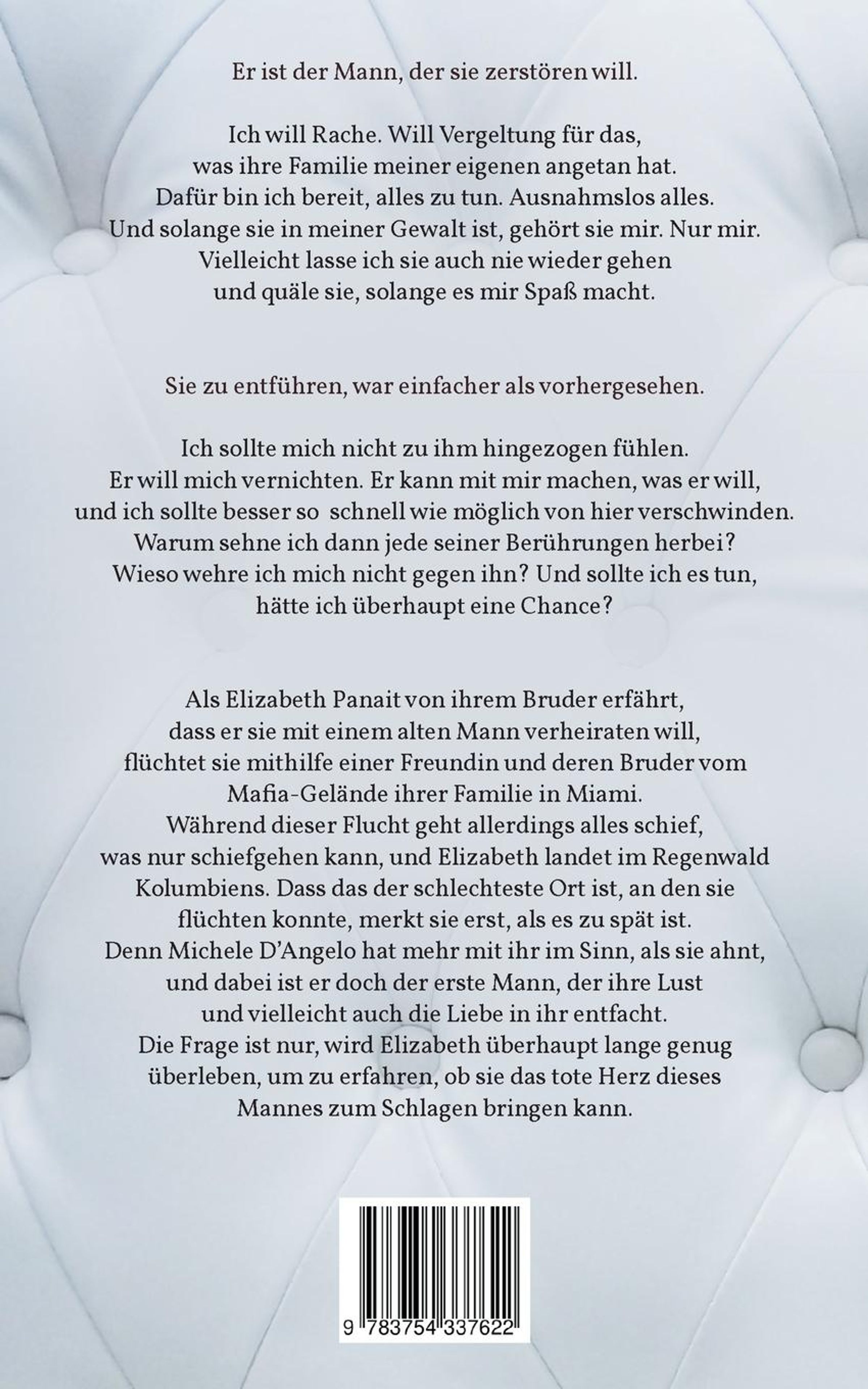 Als Elizabeth Panait von ihrem Bruder erfährt, dass er sie mit einem alten Mann verheiraten will, flüchtet sie mithilfe einer Freundin und deren Bruder vom Mafia-Gelände ihrer Familie in Miami. Während dieser Flucht geht allerdings alles schief, was nur schiefgehen kann, und Elizabeth landet im Regenwald Kolumbiens. Dass das der schlechteste Ort ist, an den sie flüchten konnte, merkt sie erst, als es zu spät ist. Denn Michele D Angelo hat mehr mit ihr im Sinn, als sie ahnt, und dabei ist er doch der erste Mann, der ihre Lust und vielleicht auch die Liebe in ihr entfacht. Die Frage ist nur, wird Elizabeth überhaupt lange genug überleben, um zu erfahren, ob sie das tote Herz dieses Mannes zum Schlagen bringen kann.