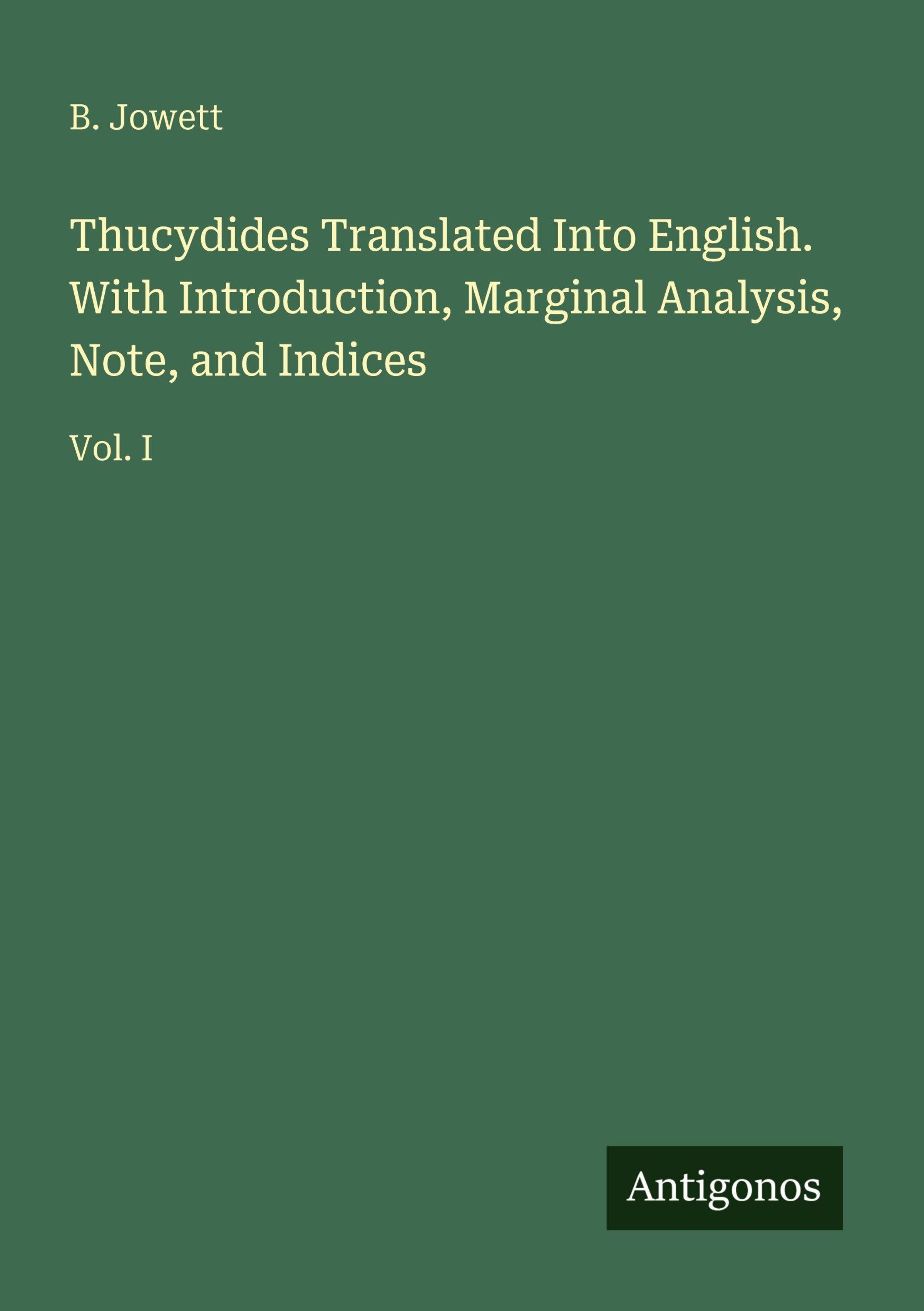 B. Jowett: Thucydides Translated Into English. With Introduction, Marginal Analysis, Note, and Indices, Kartoniert / Broschiert