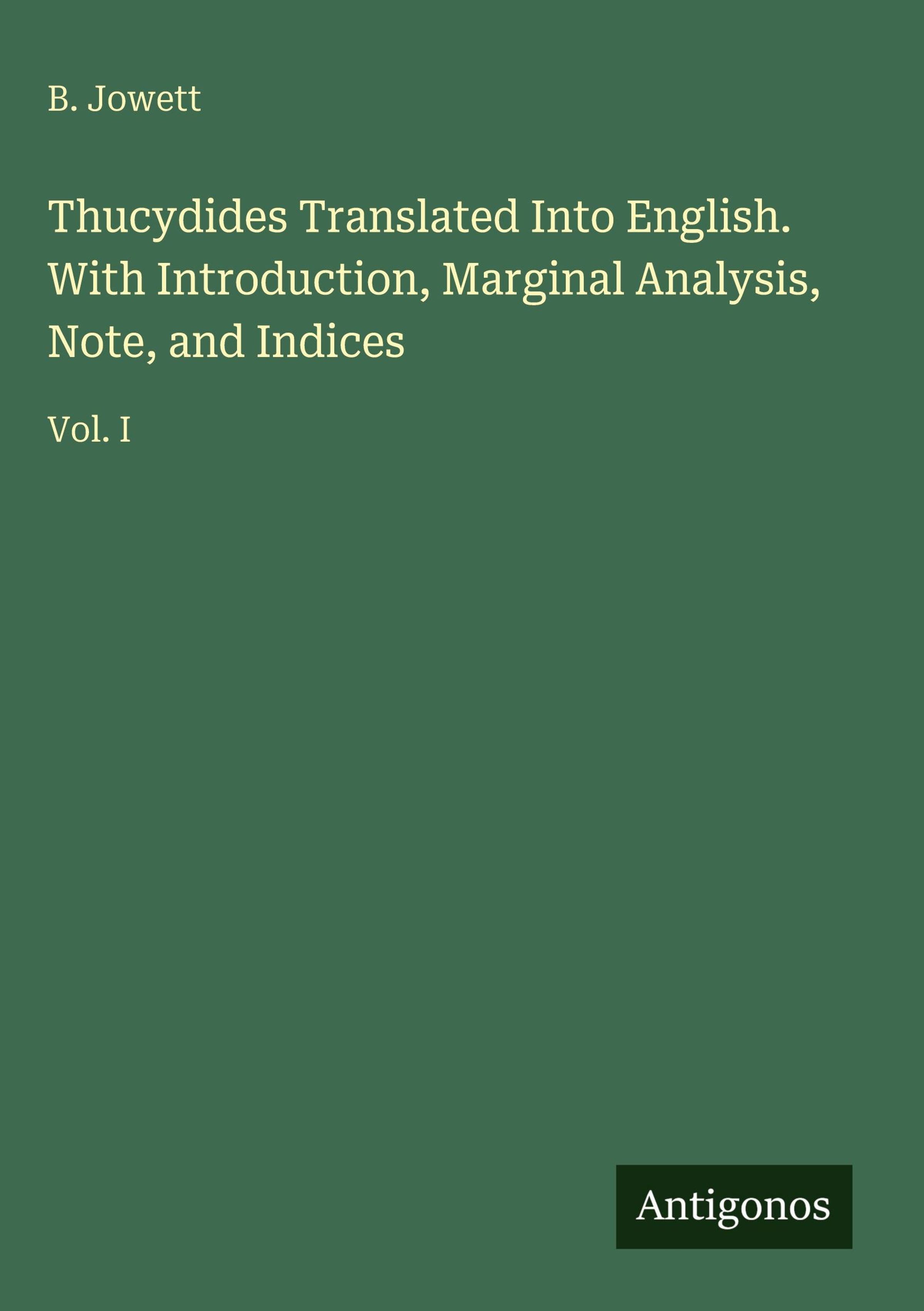 B. Jowett: Thucydides Translated Into English. With Introduction, Marginal Analysis, Note, and Indices, Gebunden
