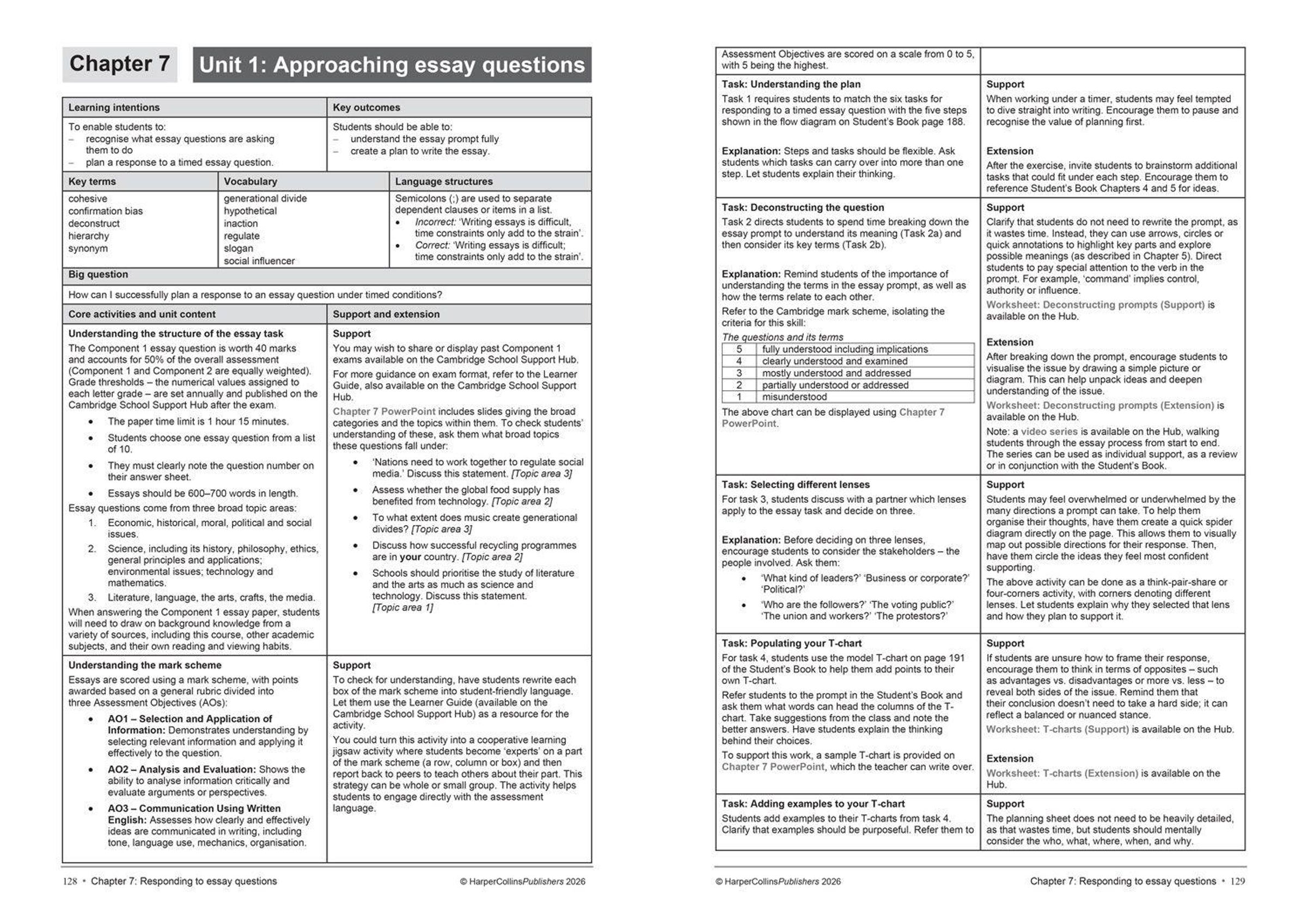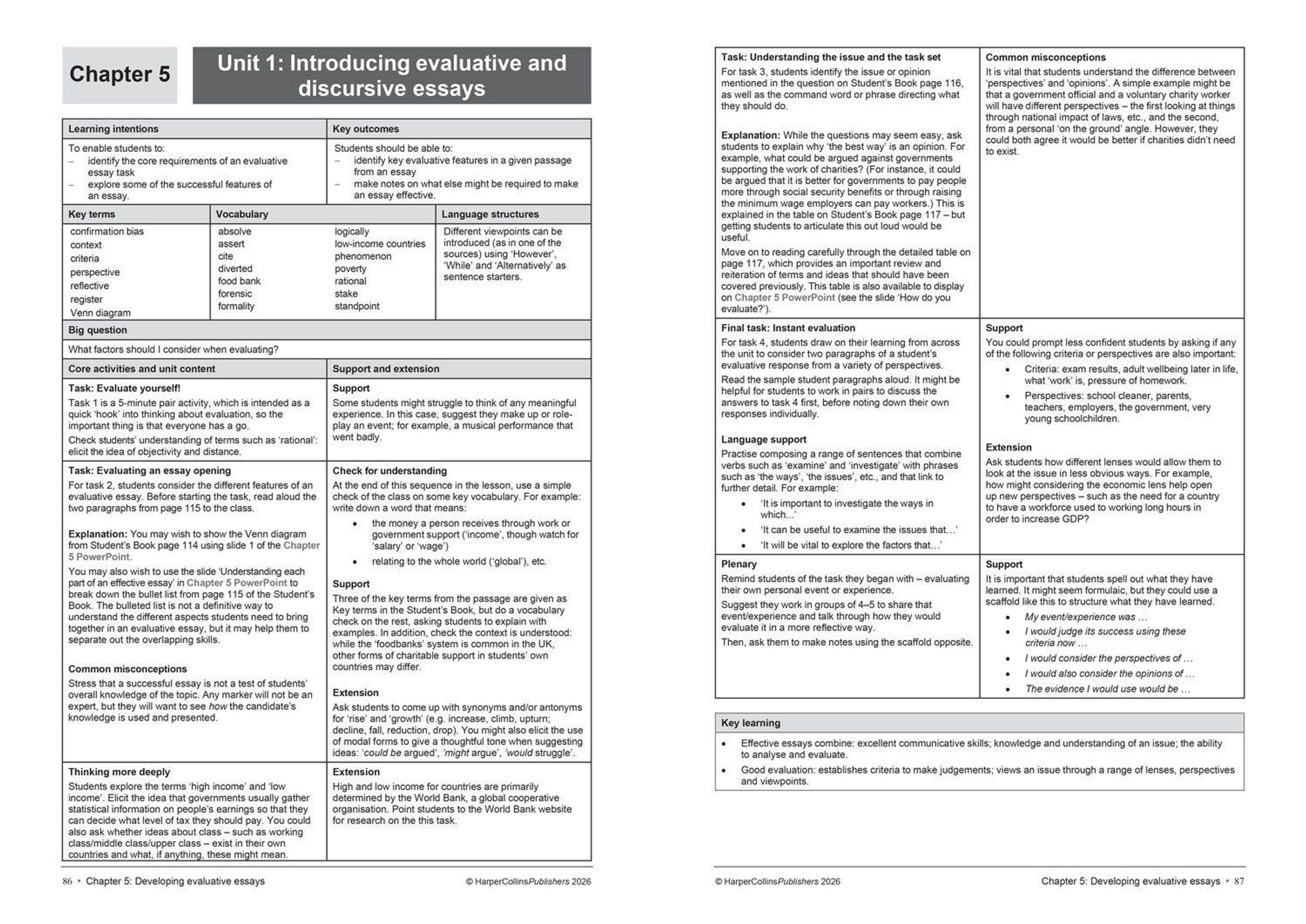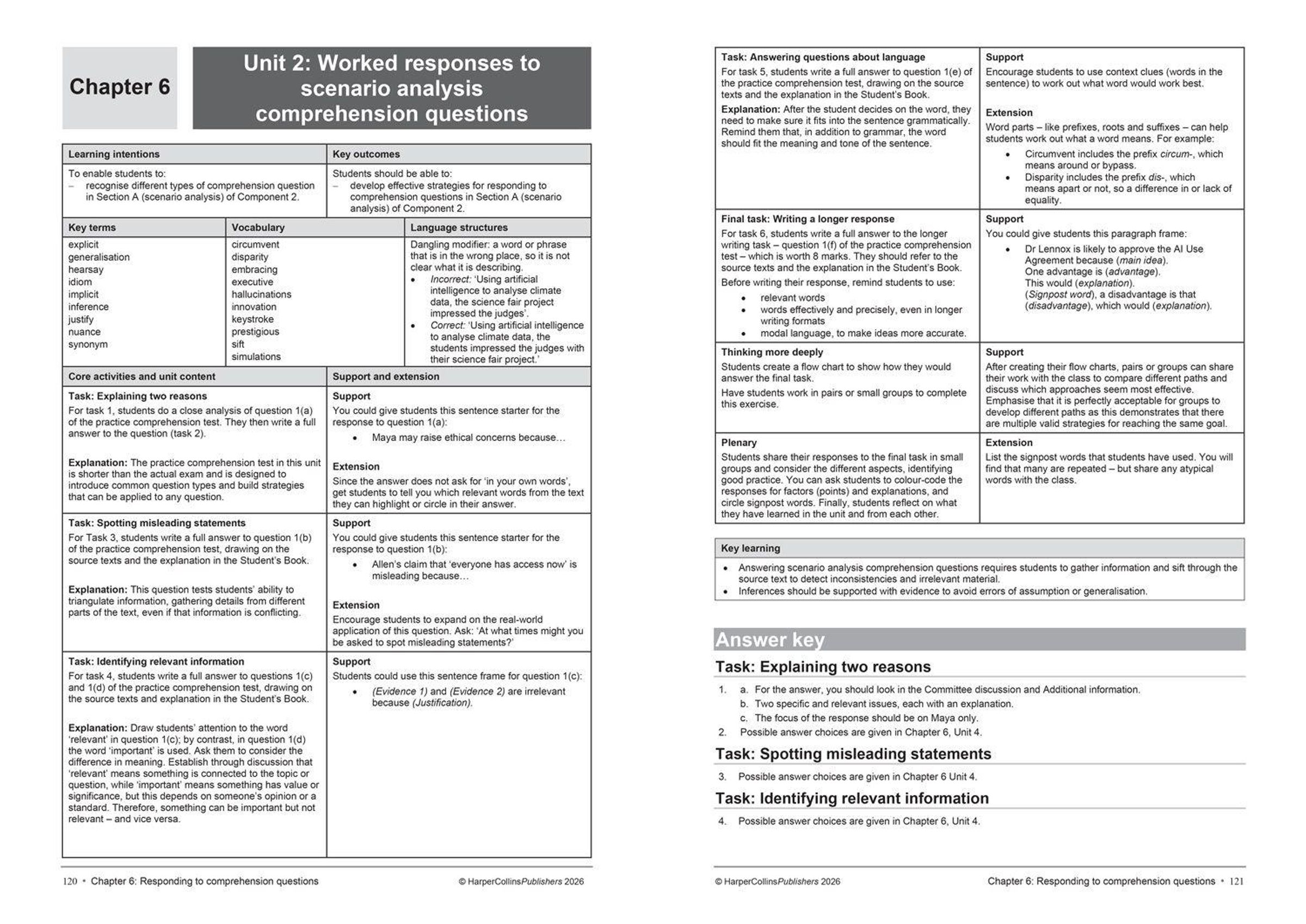 · Provides clear, quick-reference guidance for teaching each unit, outlining the intentions and key outcomes as well as highlighting any support that may be required for specific tasks.