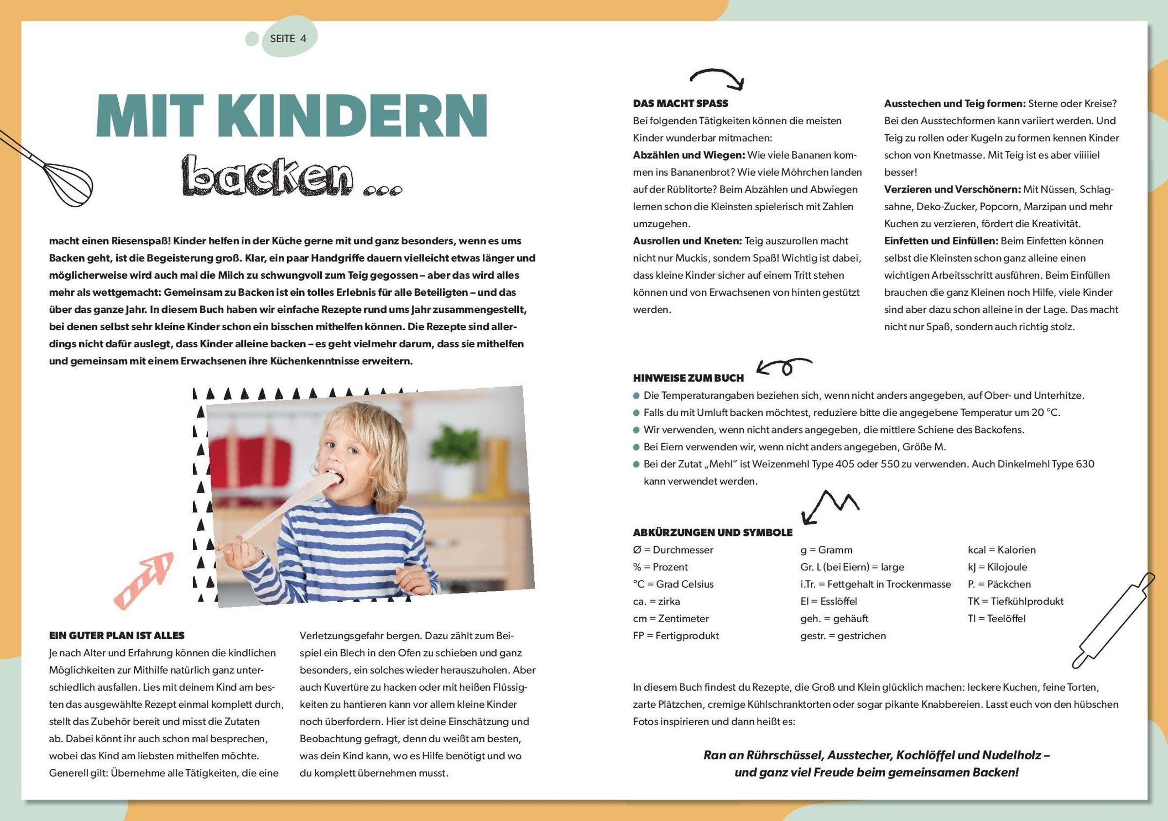 Backen mit Kindern macht einfach Spaß -- und mit unseren Rezepten wird es ganz besonders toll! Schnapp dir eine Rührschüssel, Ausstecher, Kochlöffel und ein Nudelholz und lass deiner Kreativität freien Lauf. Die einfachen Anleitungen und bunten Ideen sorgen dafür, dass gemeinsam gebacken und natürlich auch genascht wird.