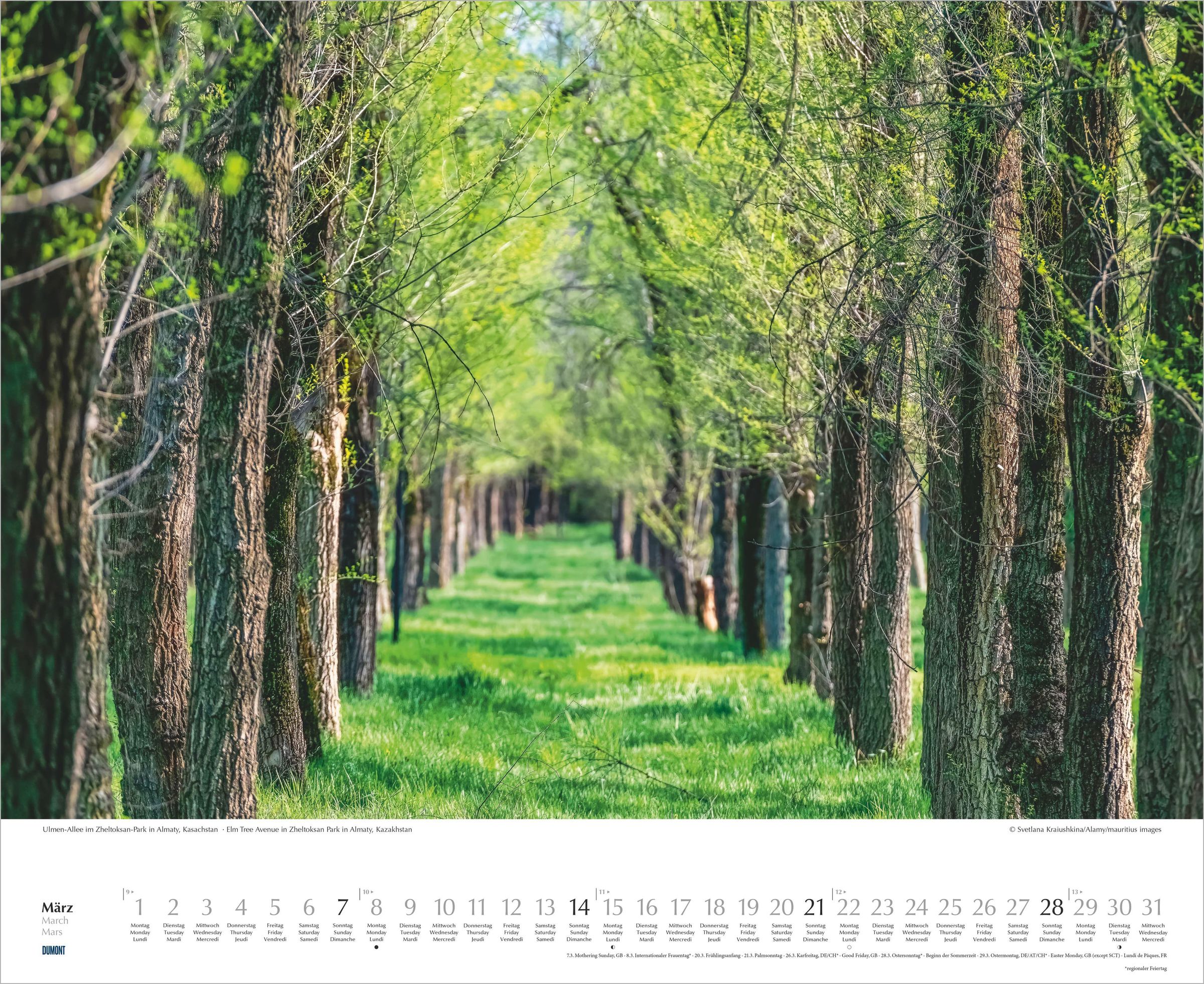 12 Monatsblätter mit großformatigen Naturaufnahmen von Alleen und alten Bäumen