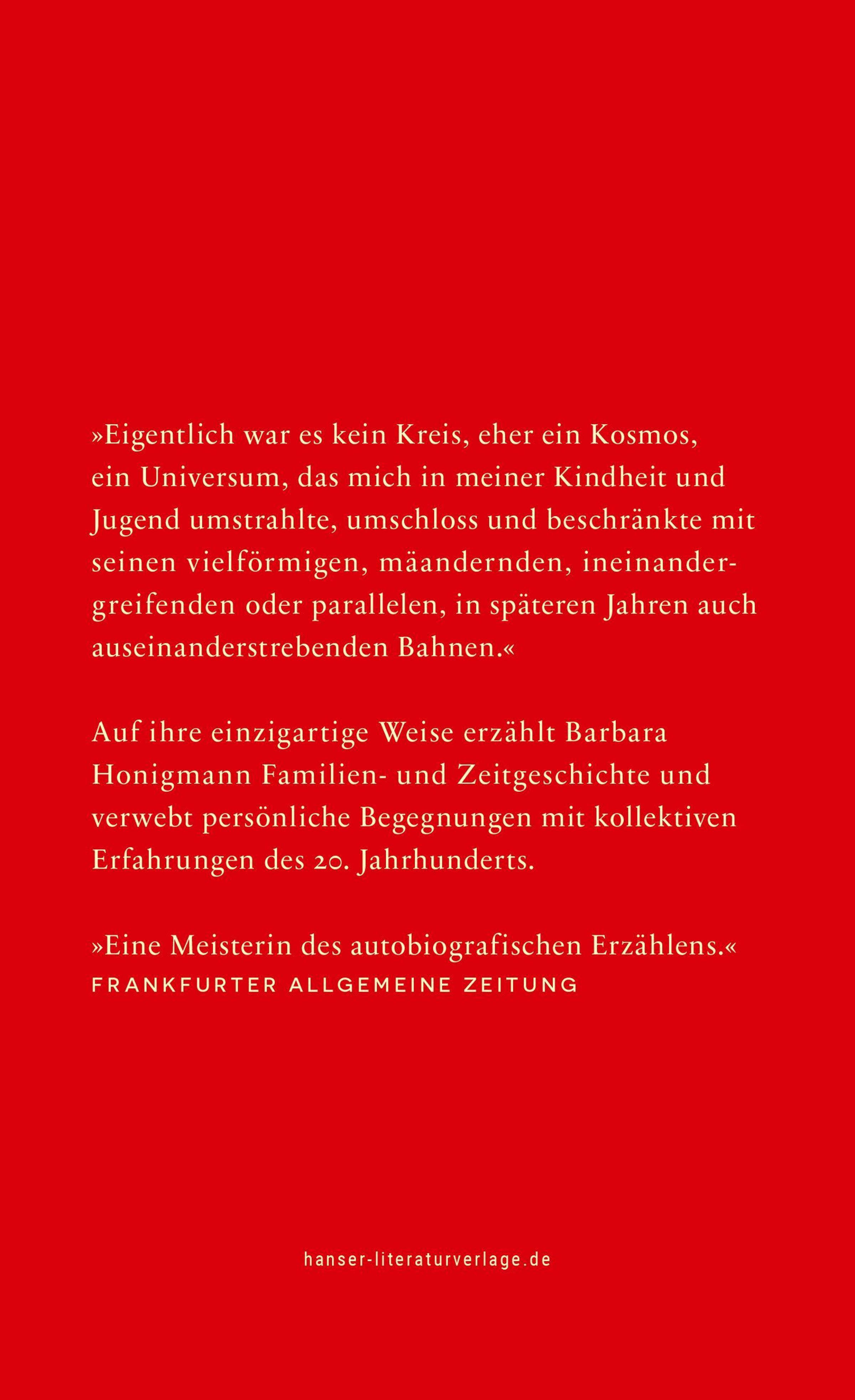 'Eigentlich war es kein Kreis, eher ein Kosmos, ein Universum, das mich in meiner Kindheit und Jugend umstrahlte.' Barbara Honigmann erzählt vom Leben und Überleben der Freunde ihrer Eltern, die den Lagern der Nazis und des Gulag entkamen. Junge jüdische kommunistische Intellektuelle, die für ihre Ideale teuer bezahlten und von denen einige doch immer wieder Auswege fanden. Mischka zum Beispiel brachte in ihrer Moskauer Zweizimmerwohnung in den Siebzigerjahren Dichter und Dissidenten zusammen, die dem Sowjetregime die Stirn boten. Vor dem Hintergrund der mörderischen Weltgeschichte des 20. Jahrhunderts bestechen diese mitreißend erzählten Erinnerungen an Bekannte, Gefährten, geliebte Menschen vor allem durch ihre Freundlichkeit, ihre Wärme, ihren Witz.