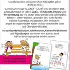 Mit Achtsamkeitsübungen, Affirmationen, kleinen Meditationen und Yogaübungen, von denen viele auch zu zweit oder in der Gruppe geübt werden können.