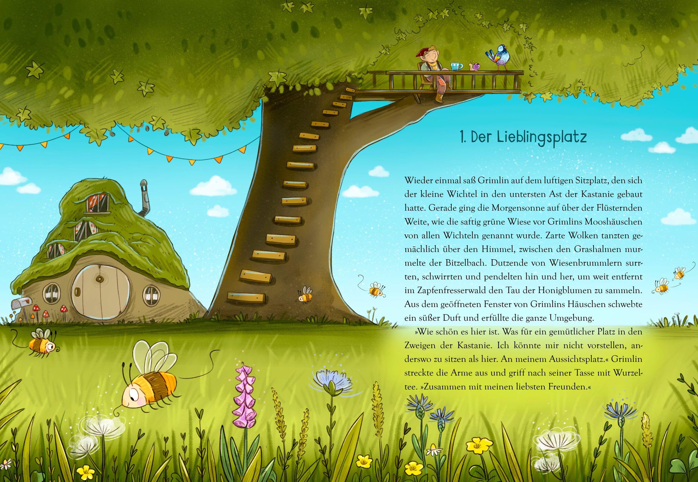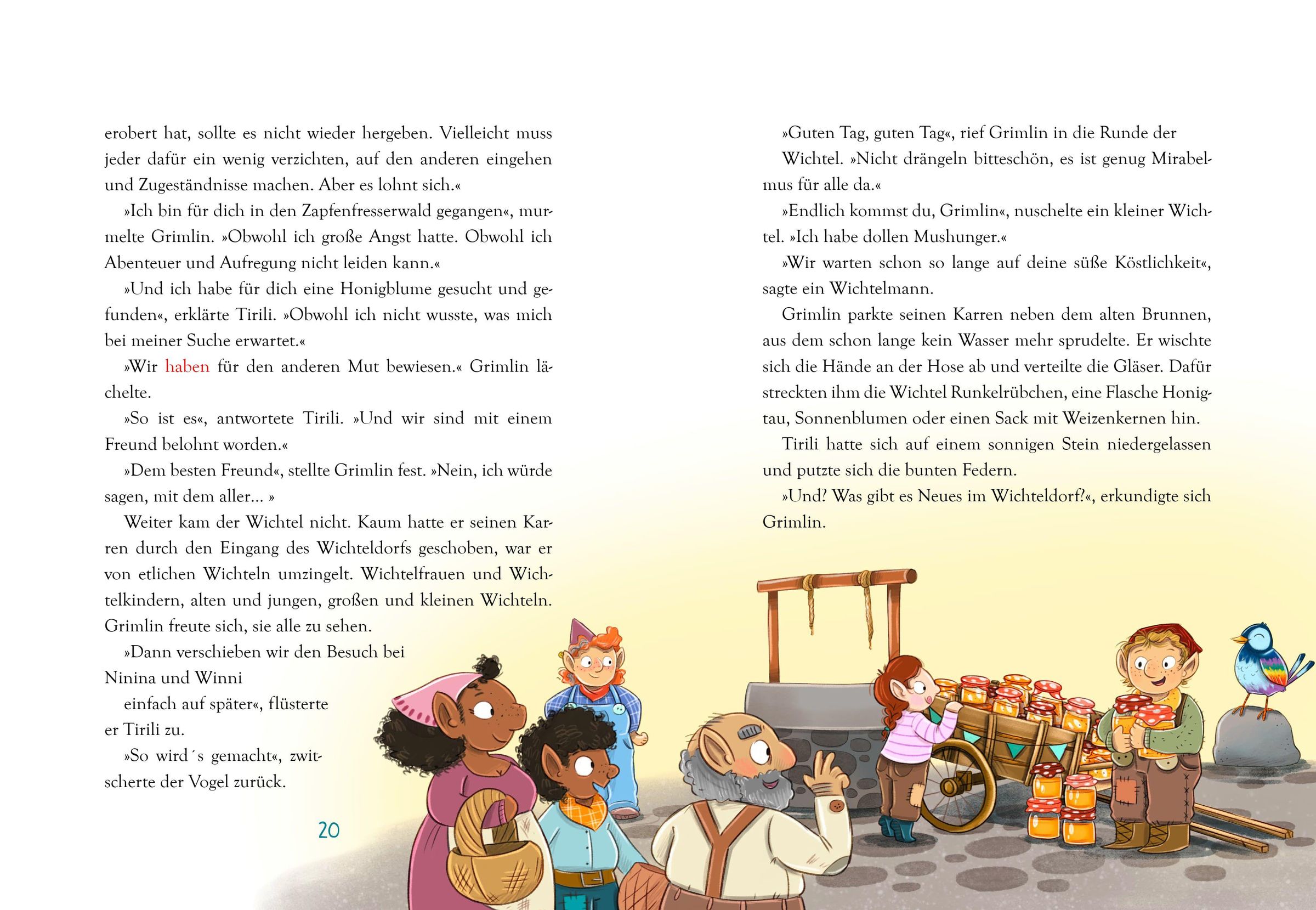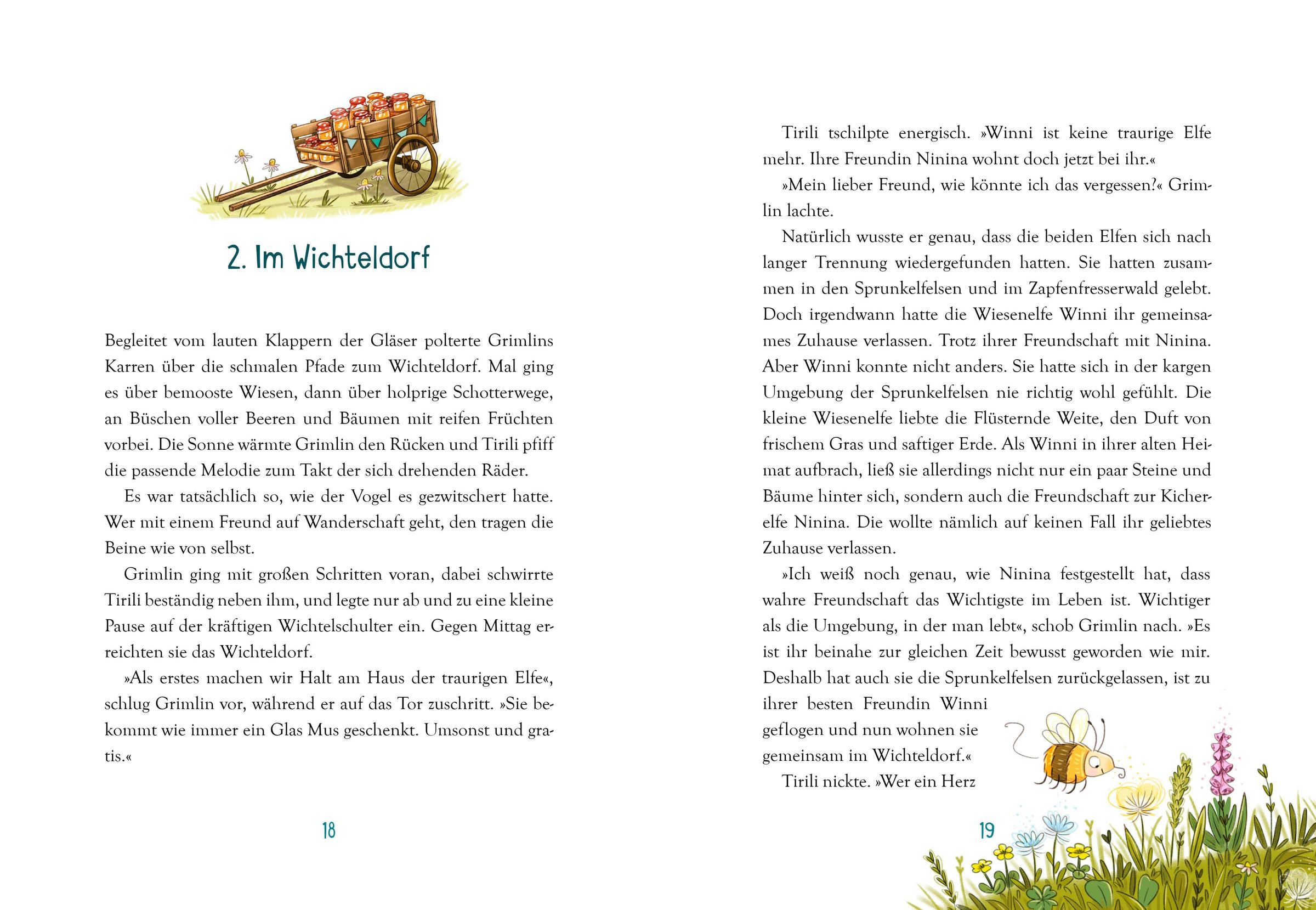 Grimlin liebt sein beschauliches Wichtelleben - mit Wurzeltee, seinen besten Freunden und selbst gekochtem Mirabelmus. Doch eines Tages zieht der geheimnisvolle Zauberer Tjelle ins Dorf, und die anderen Wichtel reagieren mit Misstrauen und Ablehnung. Als Tjelle plötzlich verschwindet, macht sich Grimlin auf die Suche - und trifft dafür sogar den gefürchteten Schnappzahn. Dabei erkennt er: Nicht alles ist so, wie es scheint. Der Schnappzahn entpuppt sich als wahrer Freund. Und Tjelle kann nicht nur köstlichen Brimbelkuchen backen, sondern auch die schönsten Luftblasen zaubern. Jetzt braucht es nur noch einen guten Plan, um die anderen Wichtel davon zu überzeugen ...