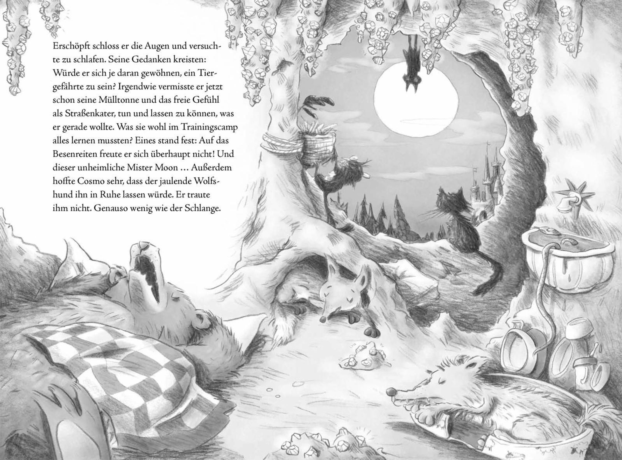 Der kleine Streunerkater Cosmo kann es kaum glauben: Nachdem er in eine Zauberhutfabrik eingebrochen ist, sollte er eigentlich zur Strafe in eine Kröte verwandelt werden. Stattdessen wird er als Tiergefährte an die Zauberschule von Wickfield berufen. Dort soll er ausgebildet werden, um später einem Zauberkind zu dienen. Doch beim Besenfliegen wird ihm immer wieder übel, die Kräuterschnüffel-Prüfung geht schief, und dann wird er auch noch ausgerechnet der tollpatschigen Aywa zugeteilt. Und als wäre das nicht schon schlimm genug, stellt Cosmo bald fest, dass er zaubern kann - was für Tiere streng verboten ist! Schon haben dunkle Magier ihn im Visier ...